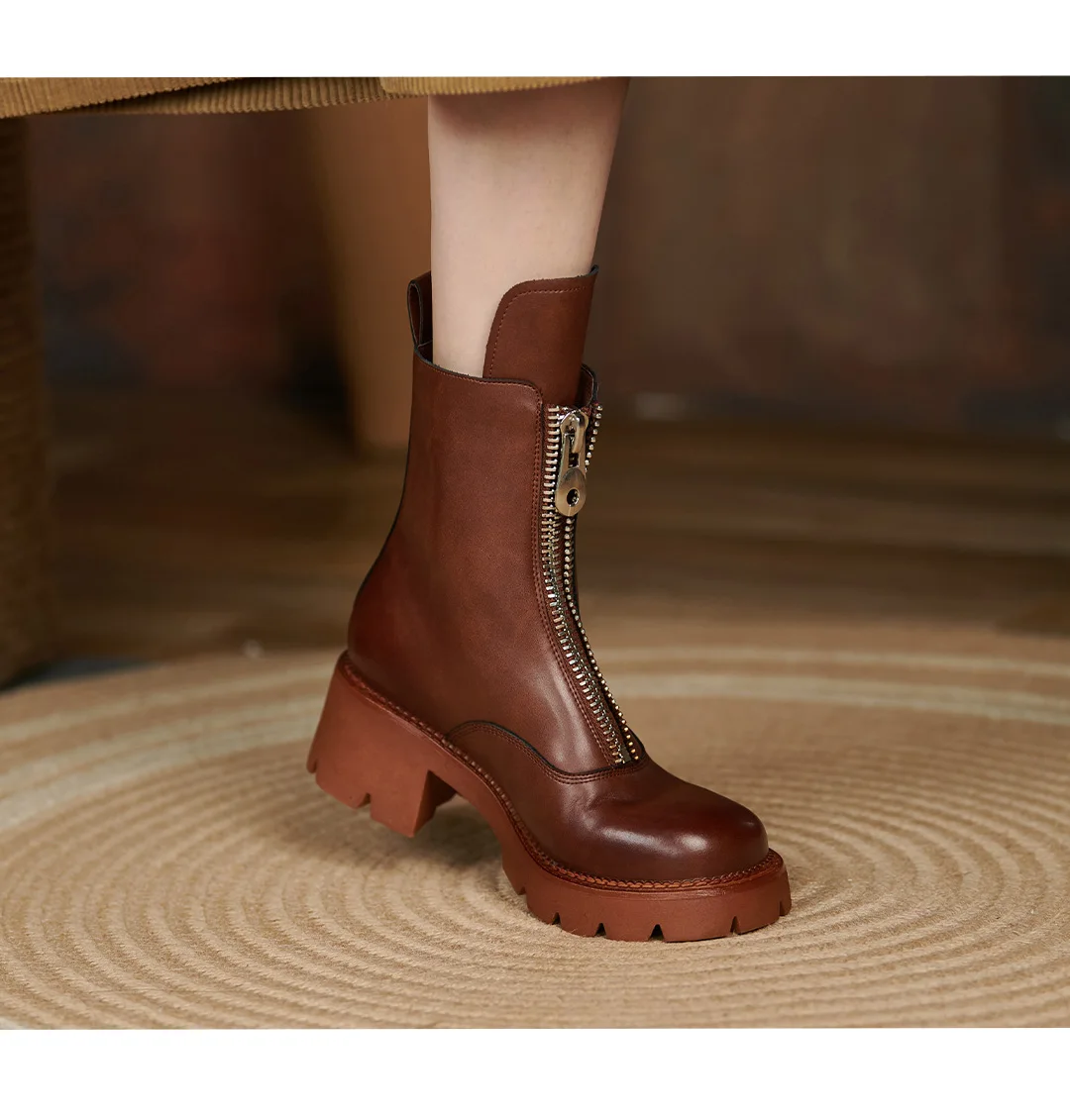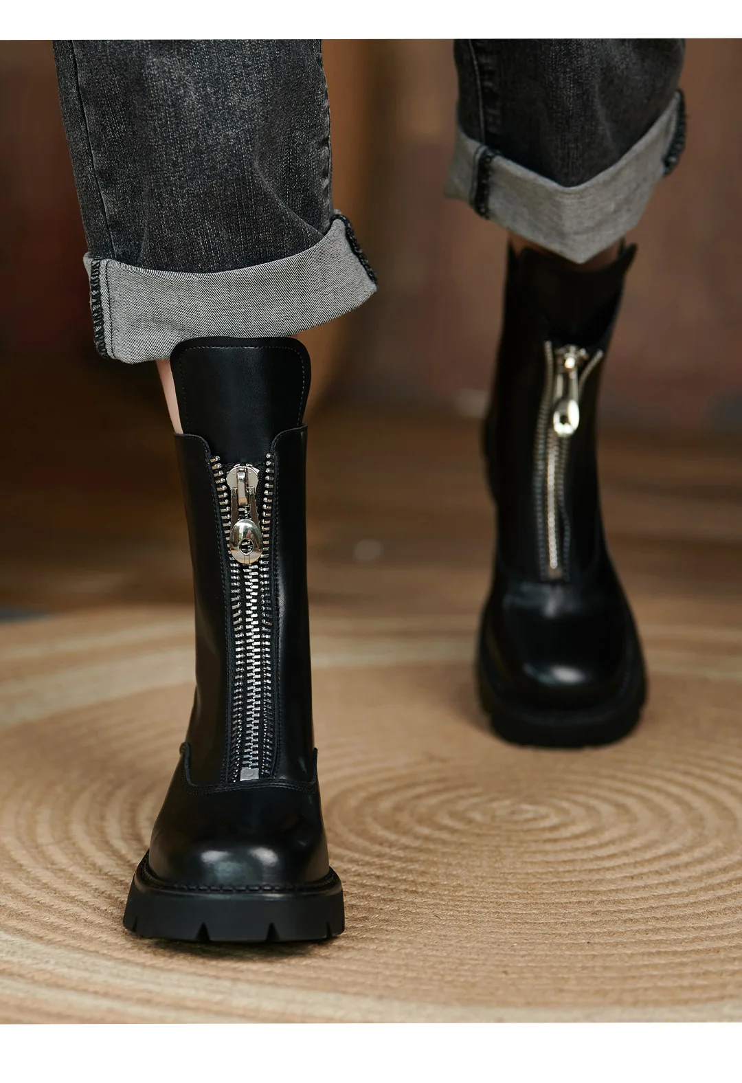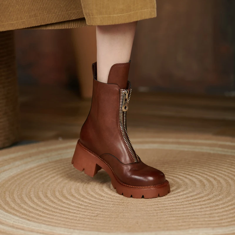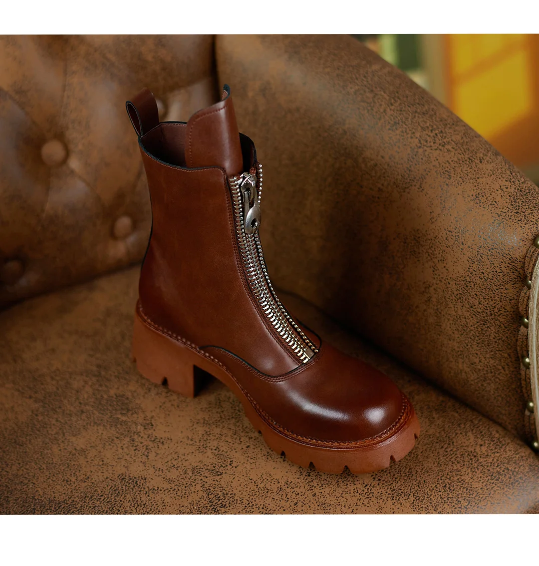 Donna-inроскошные кожаные ботинки Martin; Новинка 2021 года; Женские ботильоны на платформе с блочным каблуком; Женская уличная обувь на молнии спереди