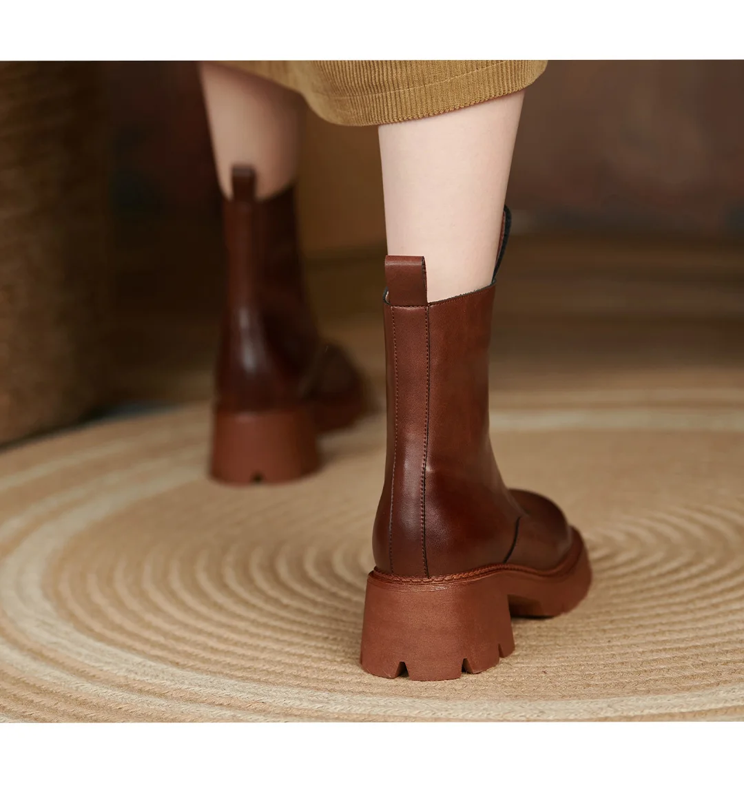 Ботинки-челси женские из натуральной кожи, без застежки, на платфор...