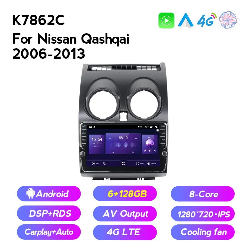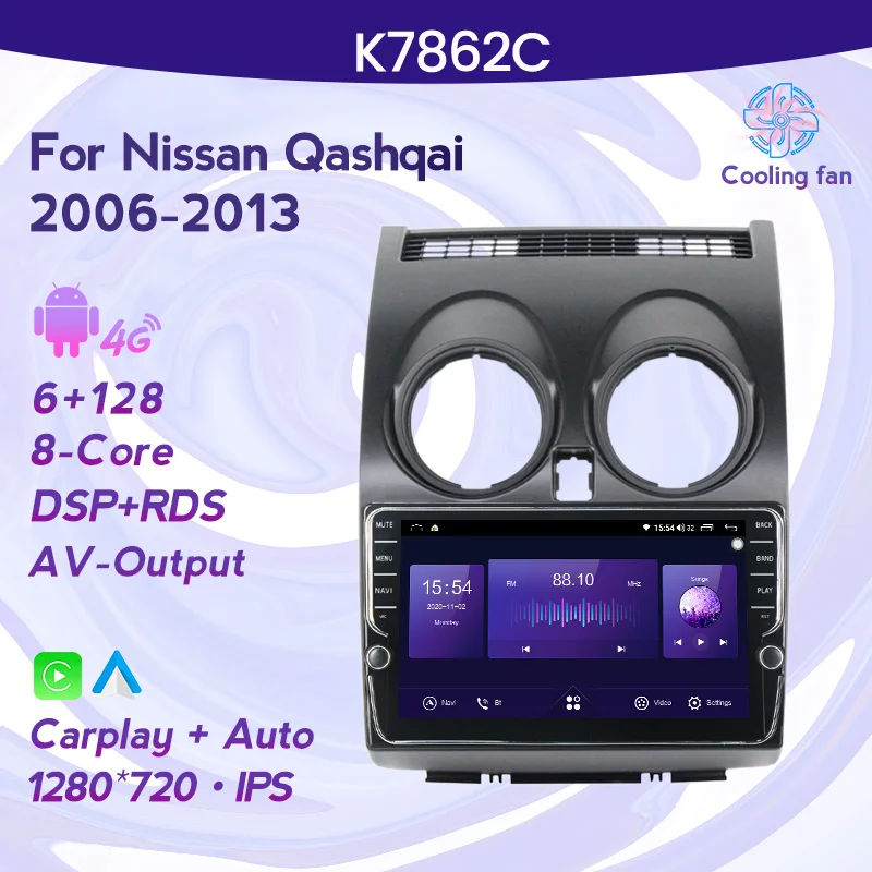 Автомагнитола 6G + 128G Android 11, мультимедийный видеоплеер для Nissan Qashqai J10 2006 2007 2008 2009 -2013, GPS-навигация, 2din dvd