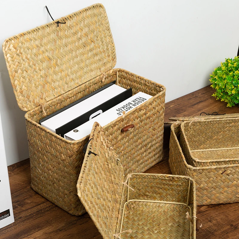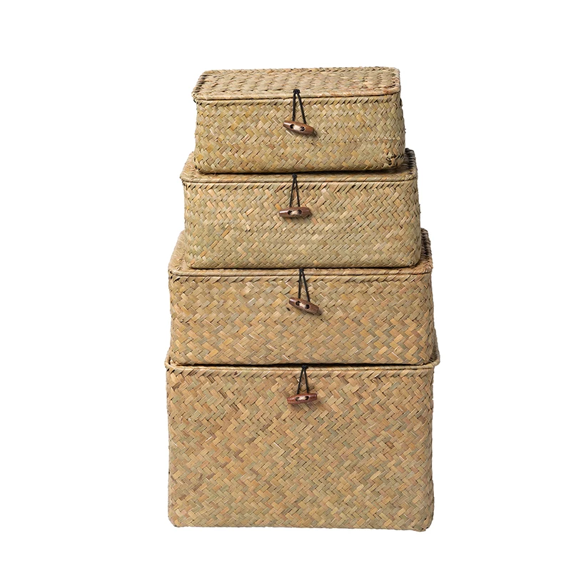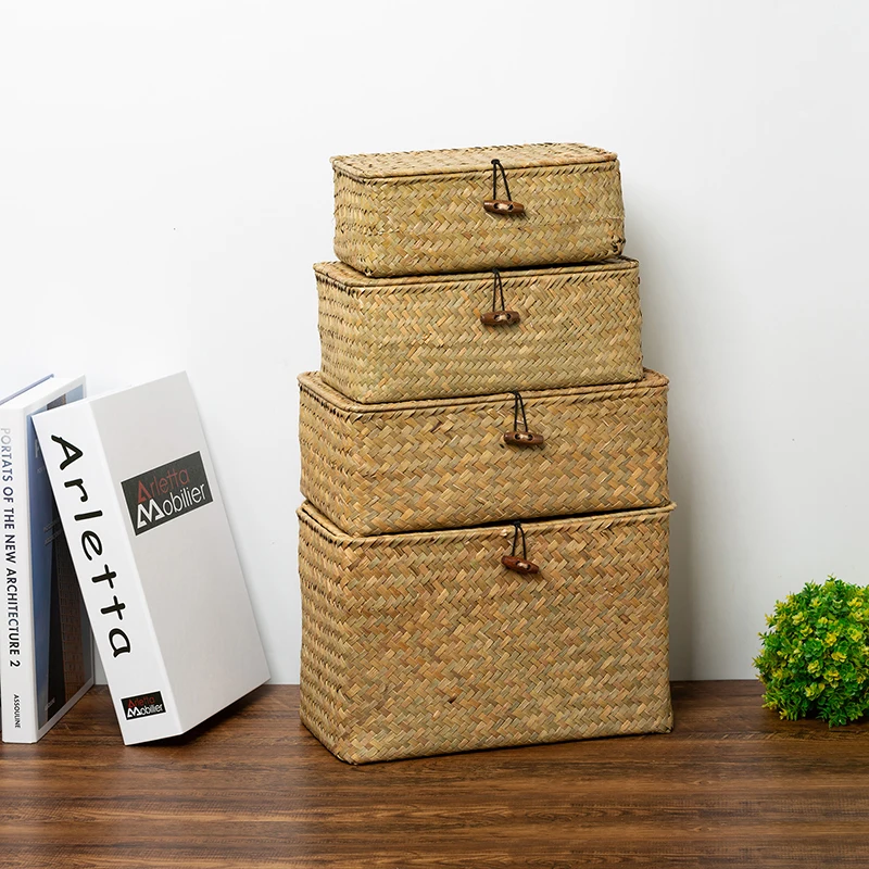 Плетеная корзина для хранения белья из морских водорослей, органайзер из ротанга для мелочей, контейнер для еды, одежды, макияжа, игрушек, украшение для дома