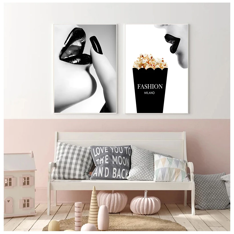 Картина на холсте Черно-белая женщина с принтом губ плакаты внутренний Декор для дома настенное Искусство Подарочные Картины для украшения гостиной