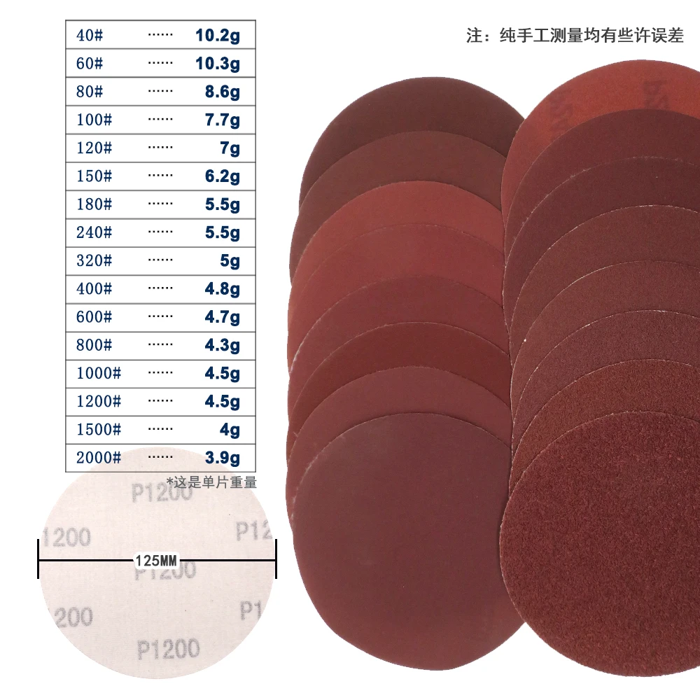 Круглые шлифовальные диски 20 шт., 5 дюймов, 125 мм, красные шлифовальные диски, абразивные листы, абразивные листы, Зернистость 40-2000