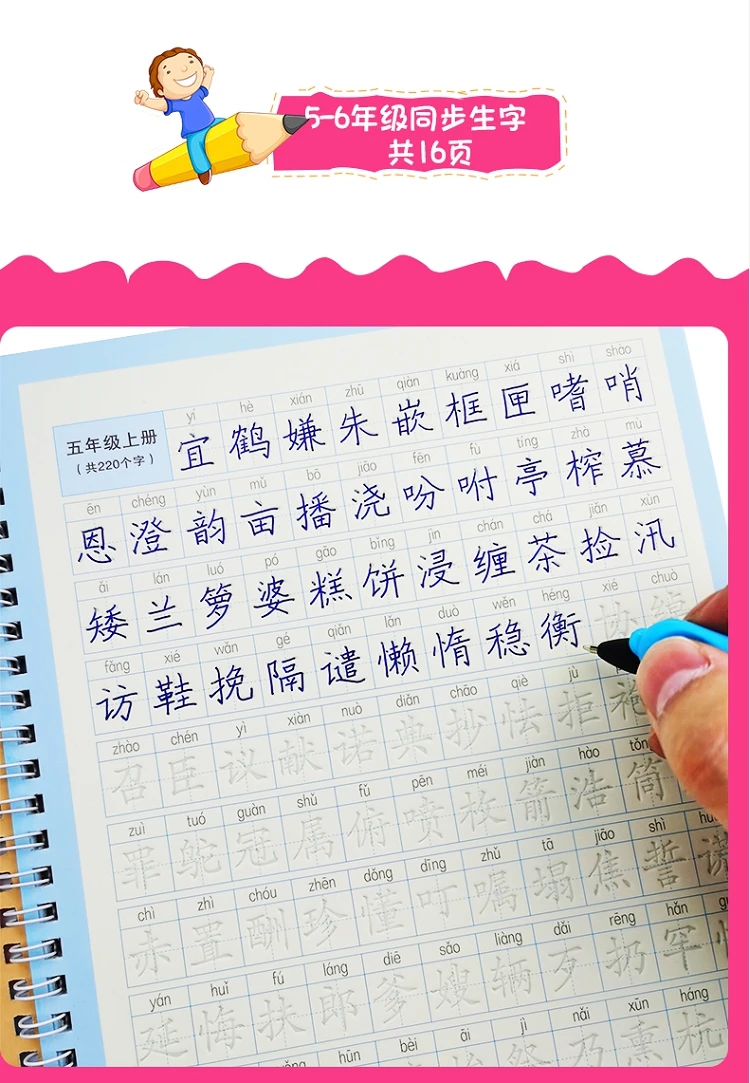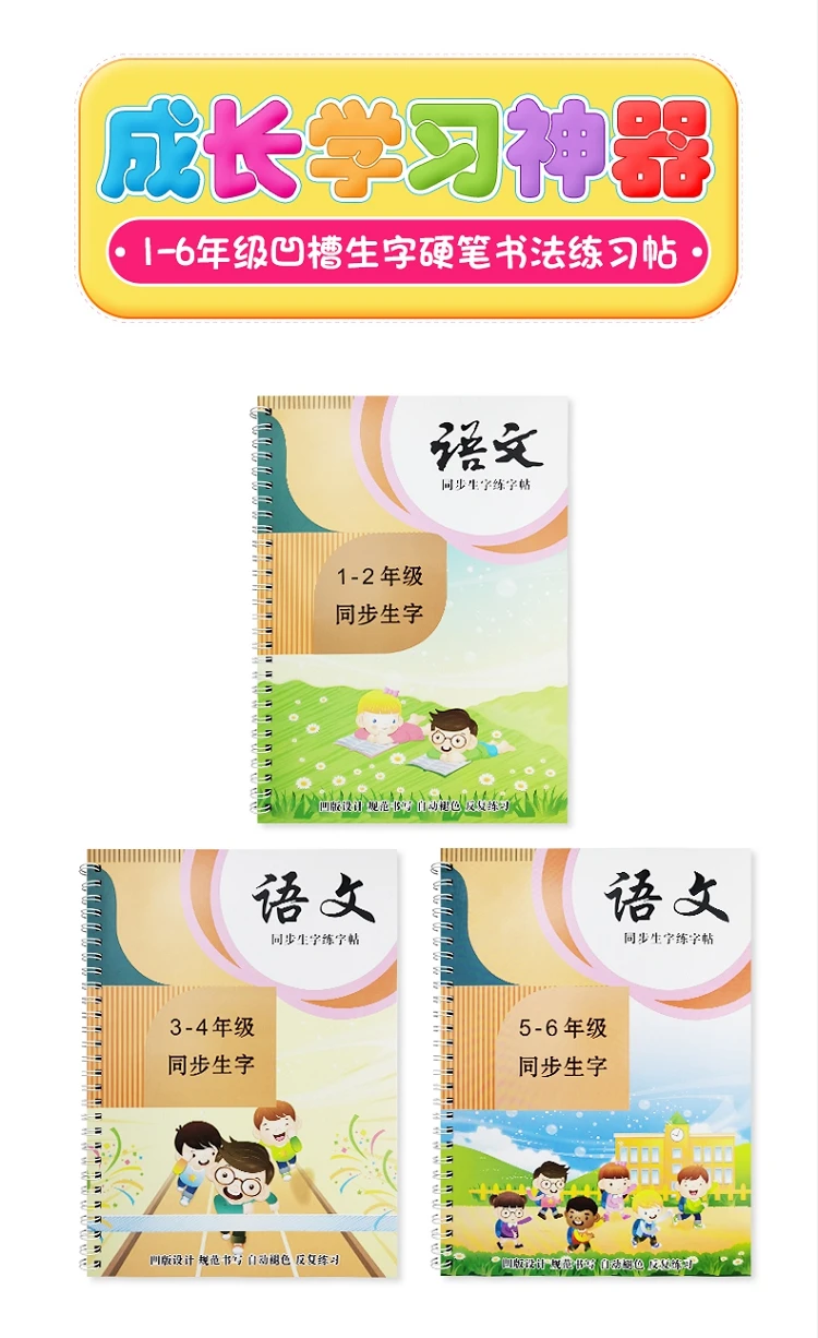 Многоразовые тренировочные учебники с 3d-канавками для синхронизации учебников с китайскими иероглифами, Детские учебники для занятий искусством и письмом, От 6 до 18 лет
