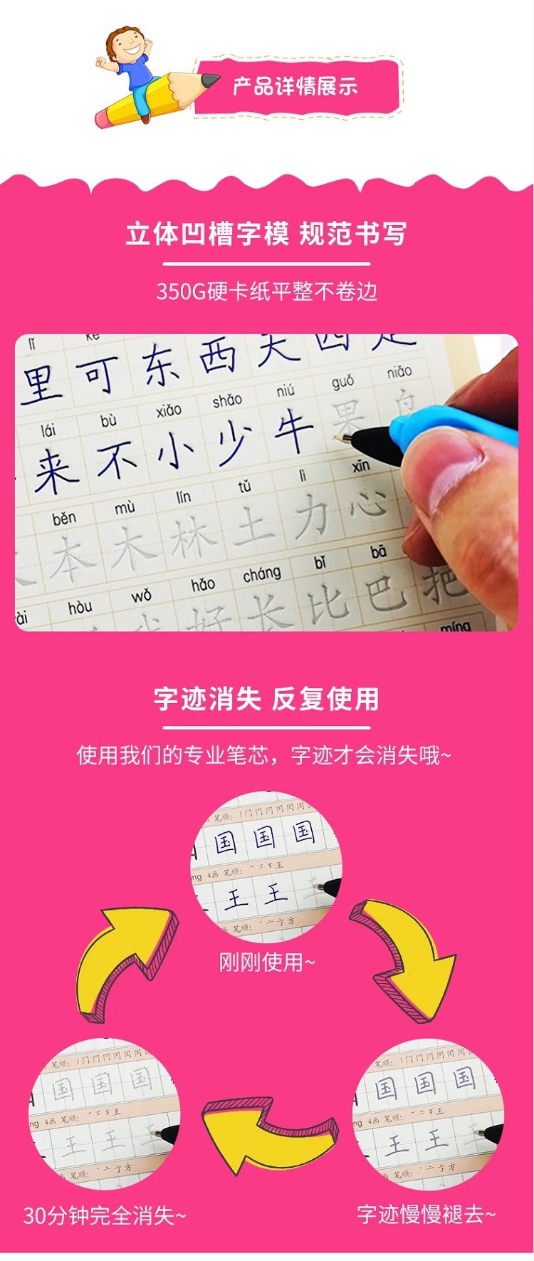 Многоразовая тренировка с 3d-пазом для тетради, синхронизированные учебники с китайскими иероглифами, детские книги для художественного письма От 6 до 18 лет