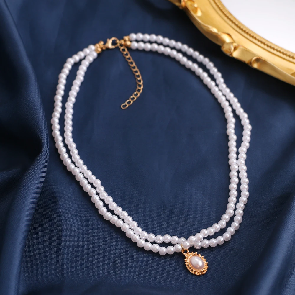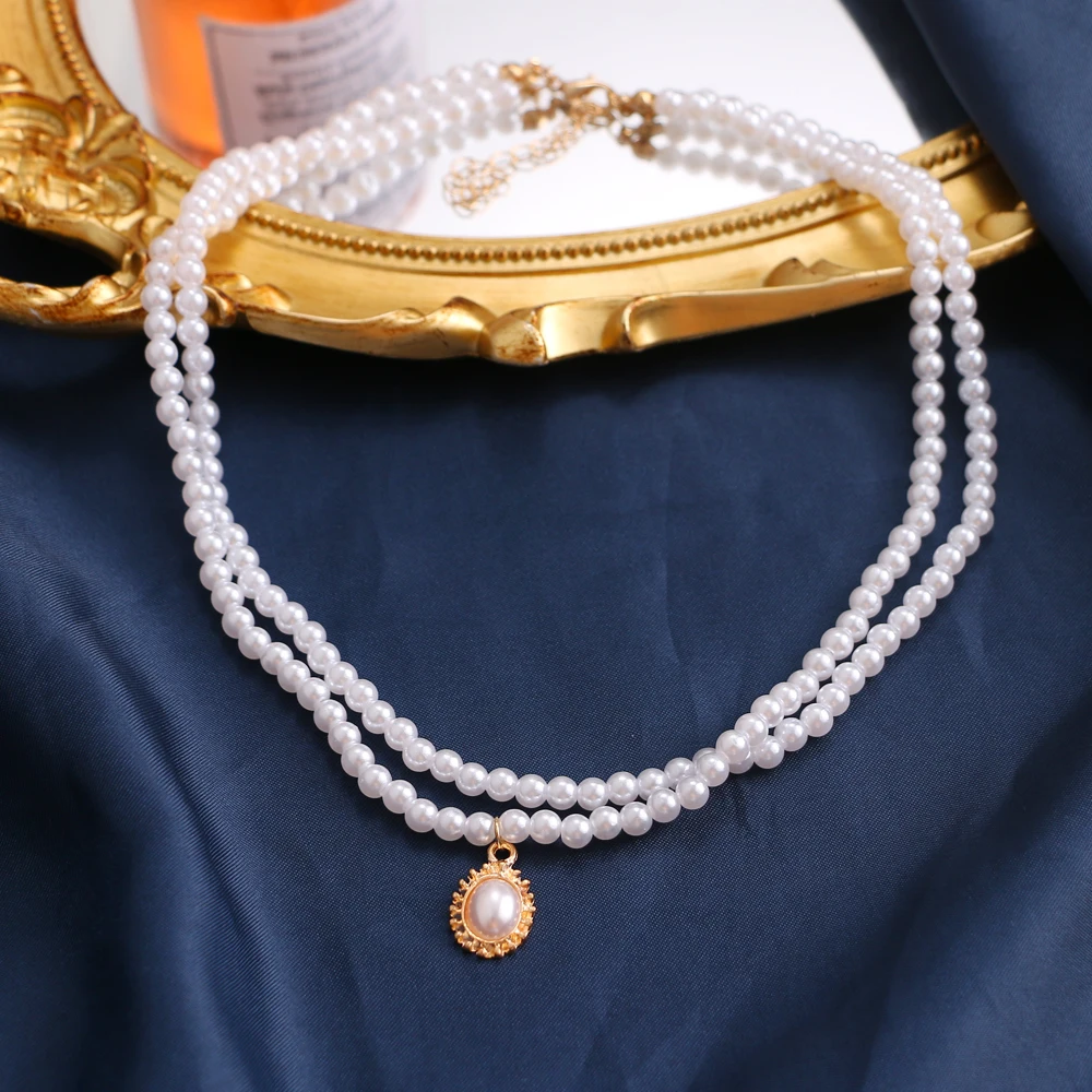 Ожерелье UMKA, винтажная цепочка с круглым жемчугом в стиле барокко, 2021 Геометрическая двухслойная цепочка, кулон для женщин, ювелирные изделия, подарок для девушки