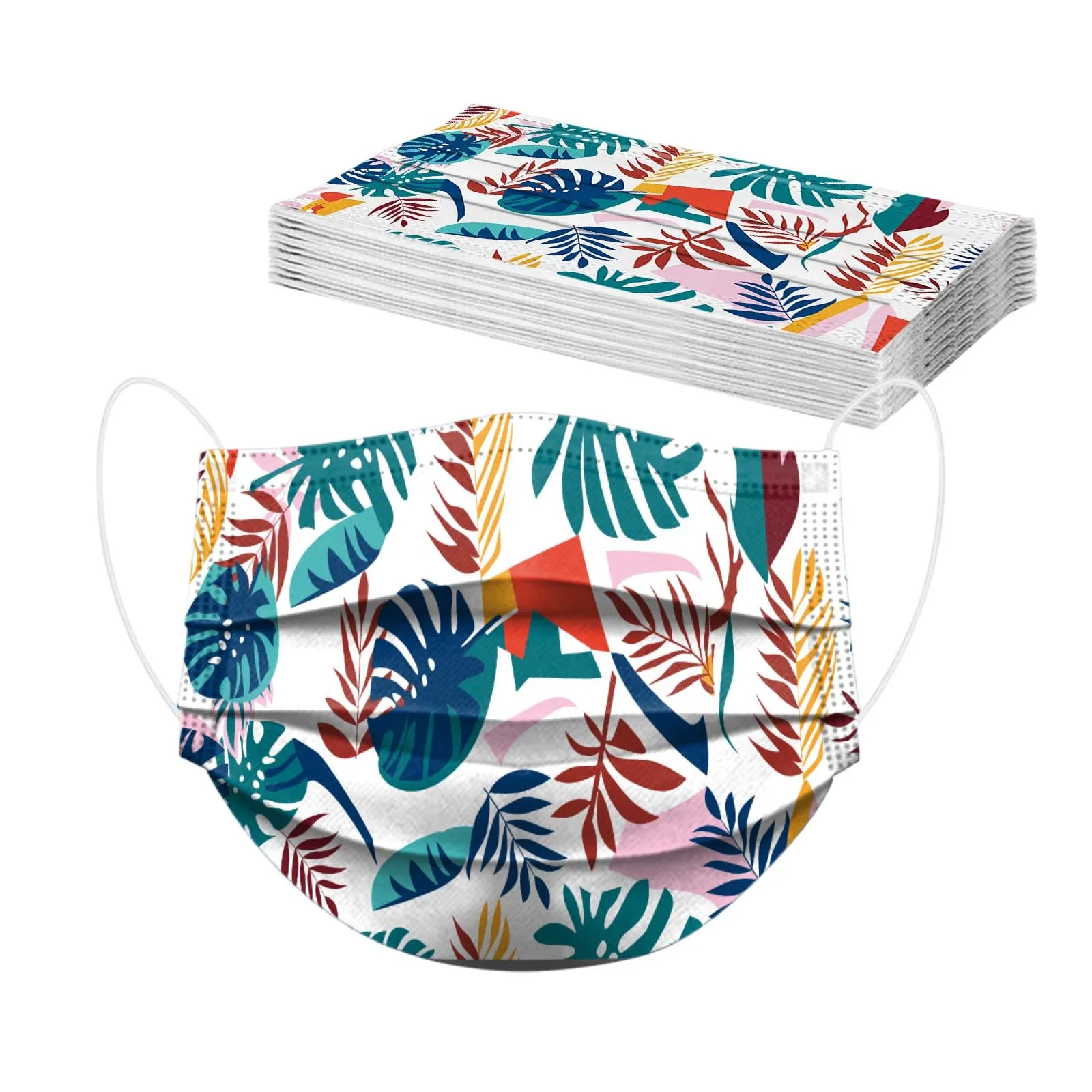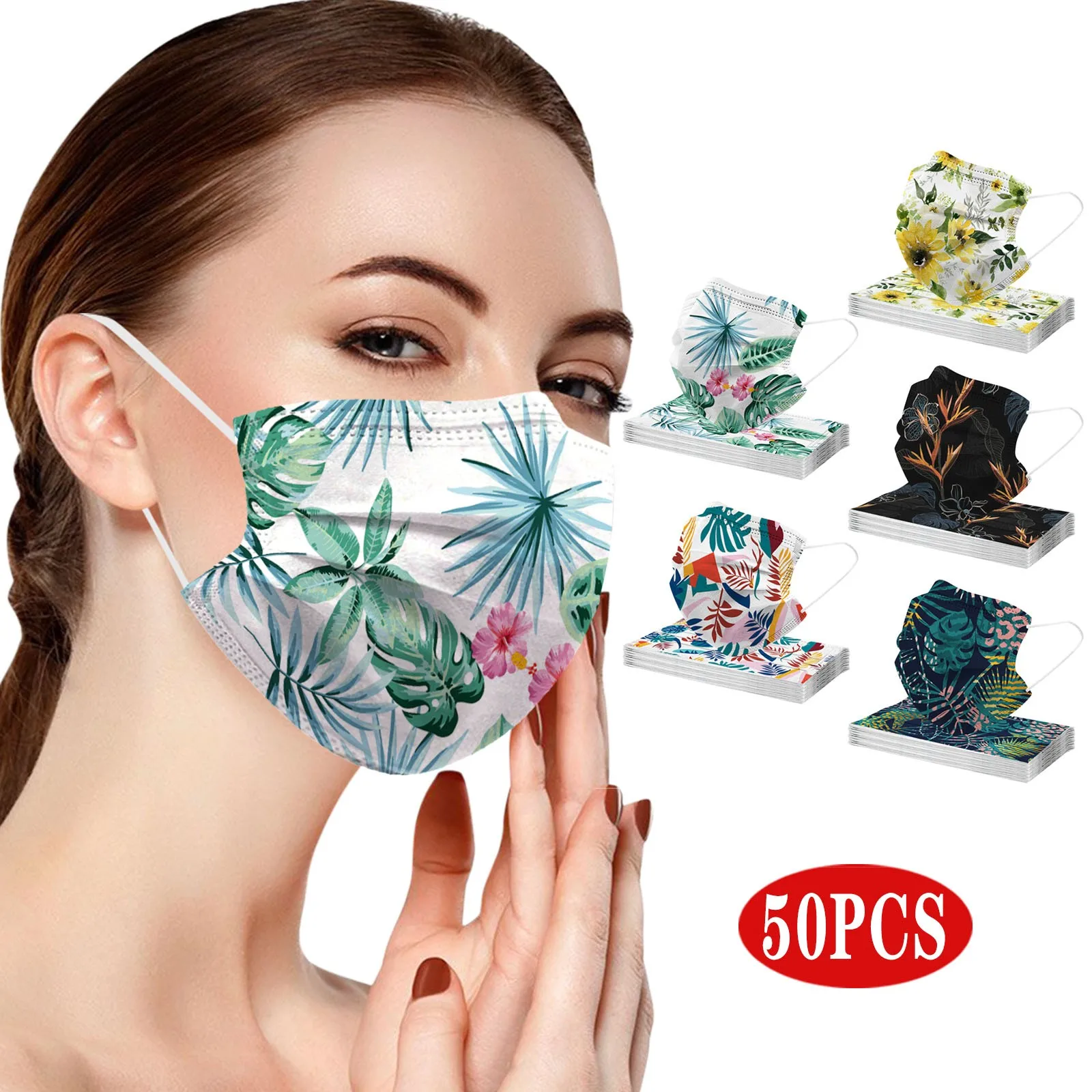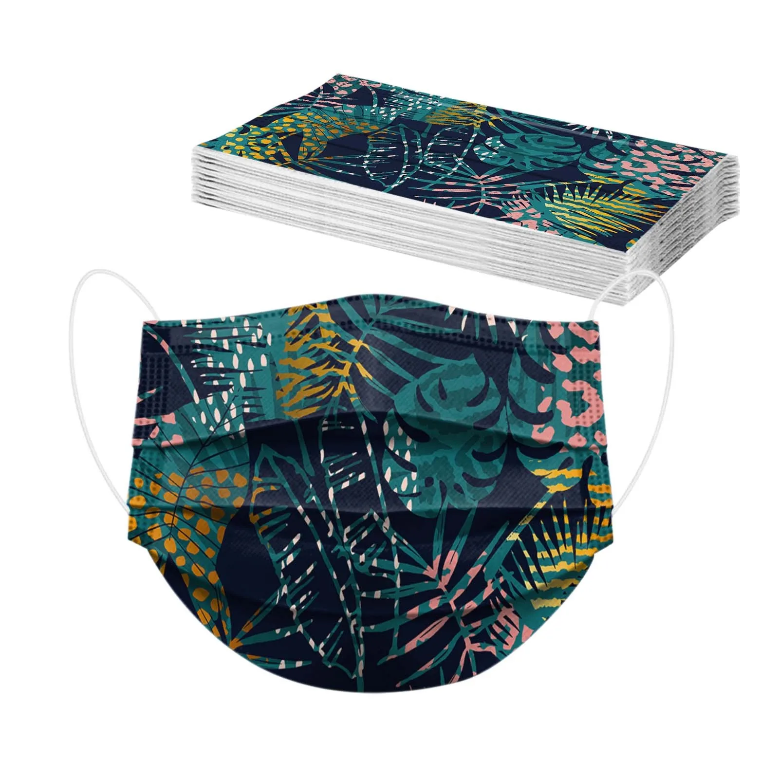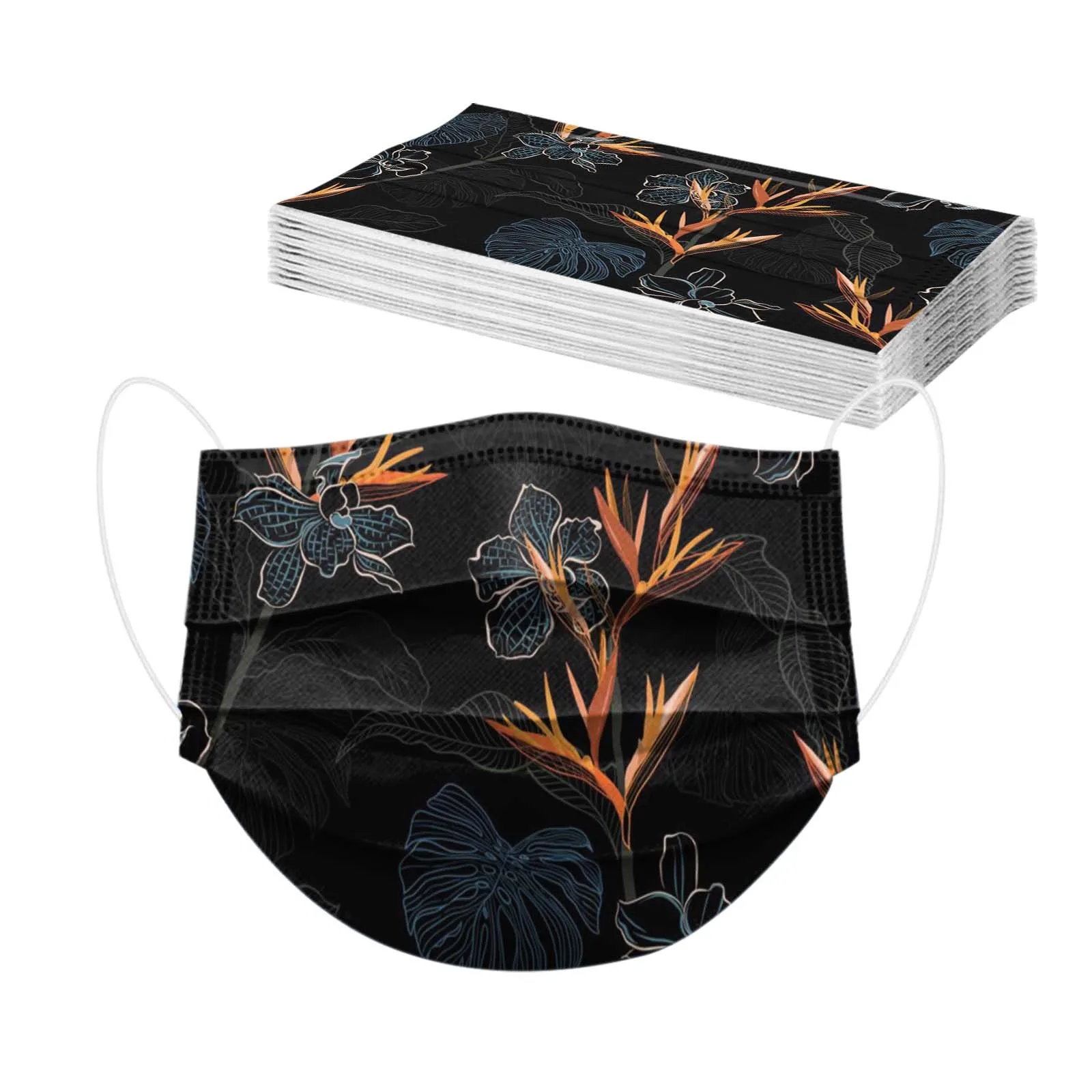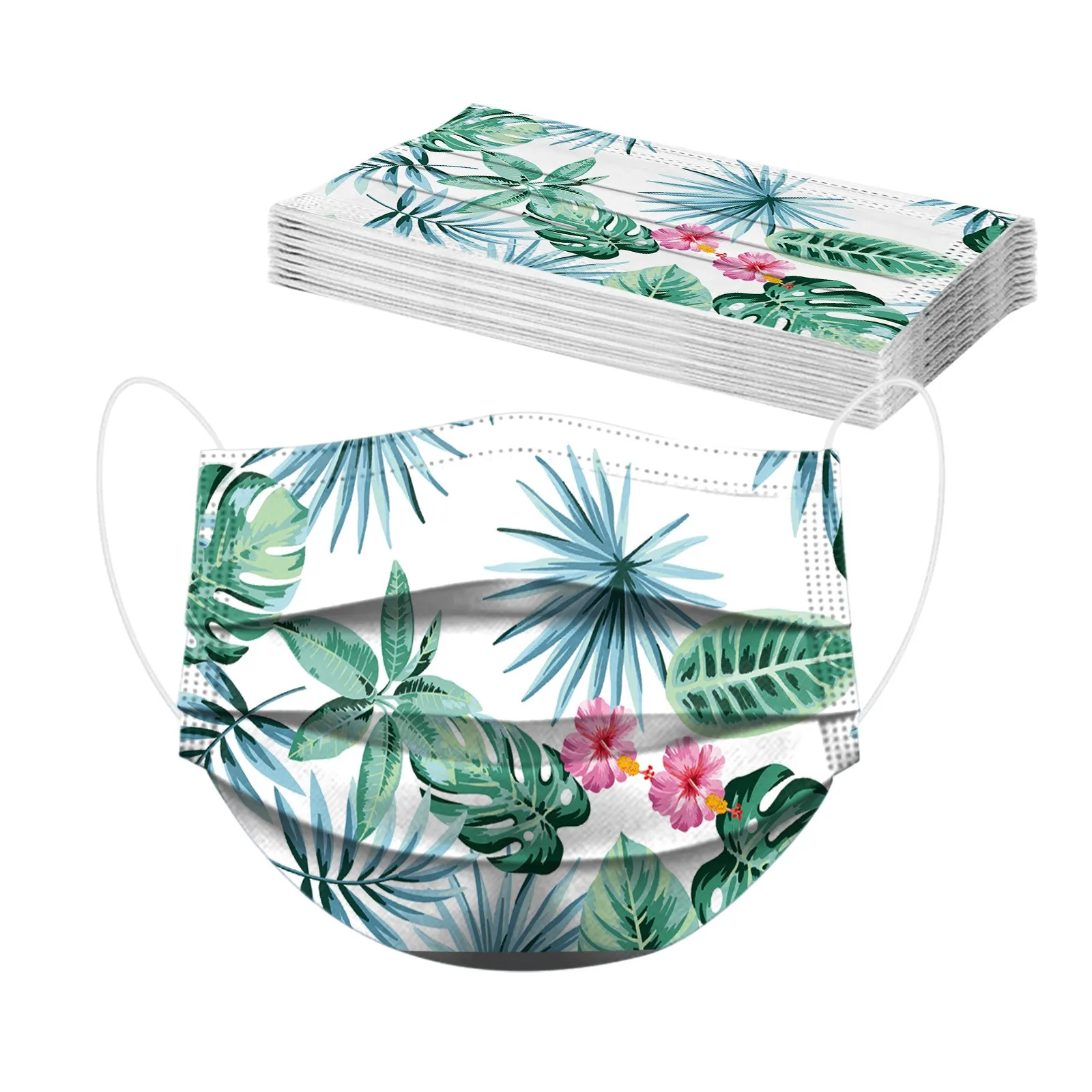 50 шт. одноразовая маска унисекс Тропический цветочный принт спанлейс маски для ухода за кожей взрослые 3-слойные маски маска для лица
