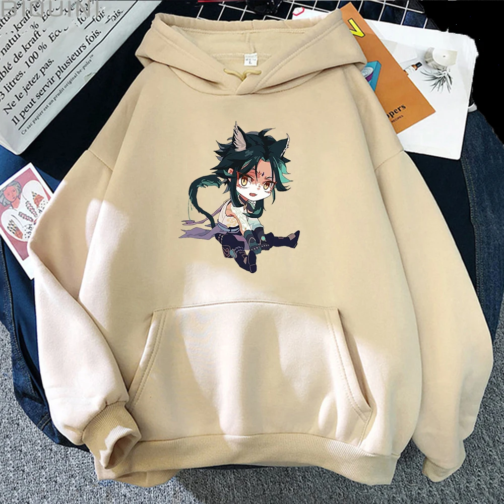 Уличная одежда Genshin Impact Xiao с принтом, свитшот, новые женские пуловеры, кавайная одежда в стиле Харадзюку, Женские повседневные худи в стиле хип-хоп с аниме