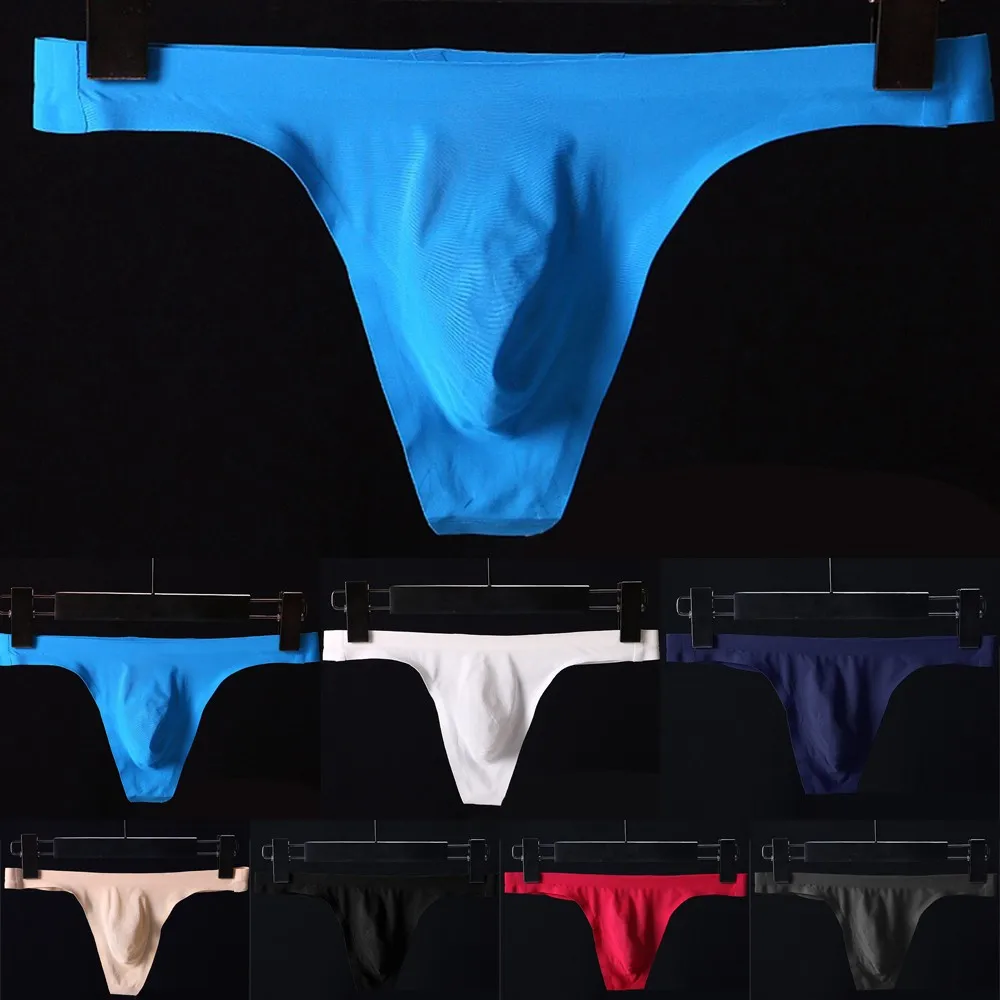 Мужские Бесшовные трусы из ледяного шелка, дышащие сексуальные стринги с низкой посадкой, Т-образные брюки, мужское нижнее белье для геев, Мужская одежда для плавания с пенисом