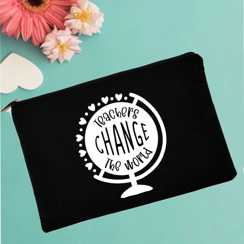 Сумка для макияжа с надписью «Teacher изменить мир», женская косметичка, органайзер для туалетных принадлежностей, женские чехлы для макияжа, лучший подарок