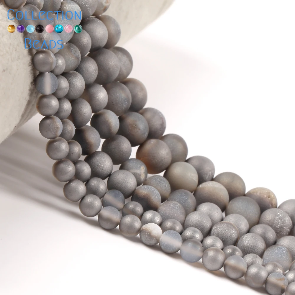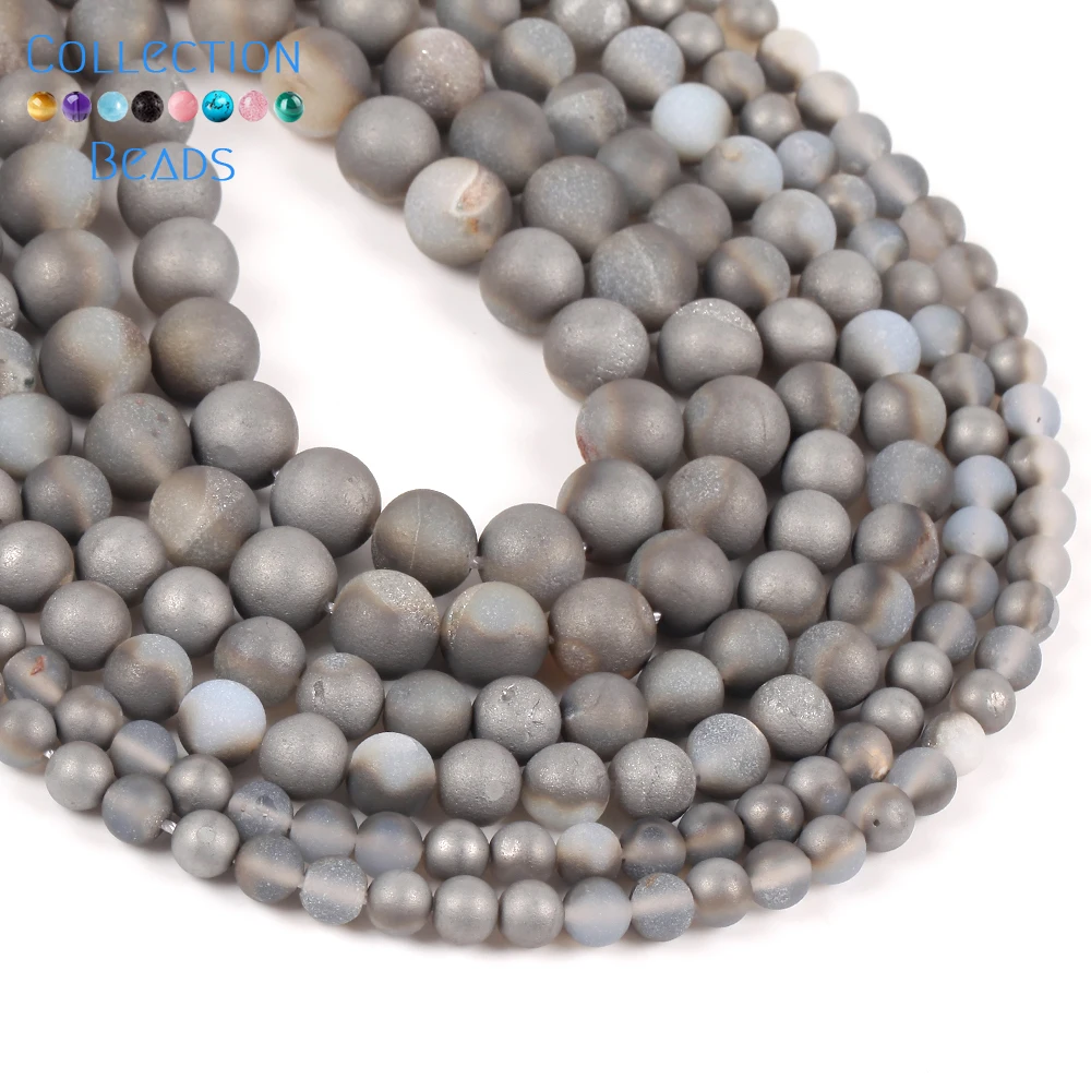 6/8/10 мм бусины из натурального камня серые белая Друза Агаты круглые бусины-разделители для самостоятельного изготовления ювелирных изделий Браслеты Аксессуары 15 дюймов