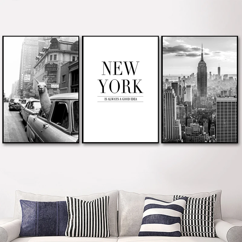 Черно-белая Картина на холсте с изображением Нью-Йорка