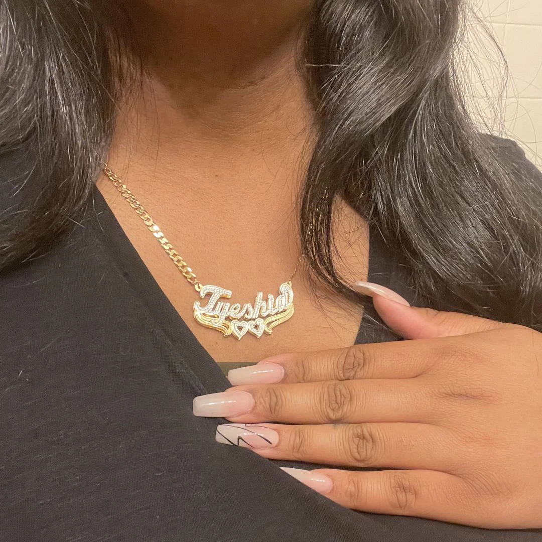 Ожерелье с двойным именем для женщин и девушек, персонализированное ожерелье из 18-каратного золота с сердцем, подвеска с 3D именем на заказ, ювелирное изделие в подарок