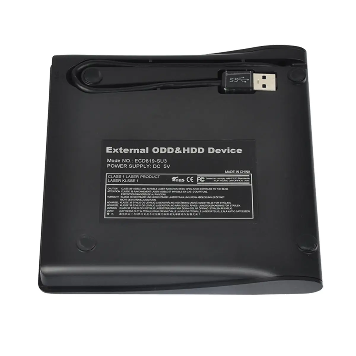 Тонкий внешний USB 3,0 CD DVD Устройство для записи DVDRW записывающий диск для ноутбукаОсобенности:1. Это внешнее USB 3,0 Супер мульти-горелка Ультра тонкое внешнее портативное USB DVD и CD записываемый дискПосле подключения к ноутбукам или ПК, вы можете просматривать фильмы DVD, слушать музыку CD, смотреть фотографии или изображения, копировать музыку, видео или данные на CD и DVD записываемых носителях.2. Записывайте DVD и CD практически из любого места с помощью этой тонкой внешней многоформатной DVD горелки. Ультра тонкий размер-ваш идеальный персональный компаньон.3. Эта внешняя ультра-тонкая USB DVD горелка поддерживает все популярные DVD и CD форматы, один или двойной слой.4. Подходит для настольных ПК или ноутбуки, занимает очень мало места на вашем столе или в вашей переносной чехол. 5. Он разработан, чтобы быть очень мобильным и портативным, чтобы перемещаться куда угодно.6. Истинная мобильность, не требует какого-либо адаптера переменного тока, не требуется внешняя мощность.7. Не требуется внешняя мощность, полностью питается от usb-портовХарактеристики:Цвет: черныйСмешанный режим CD, фото CD, видео CD, CD-ROM, DVD-видеоDVD-R: 8X CD-R: 48X.Скорость записи: 24x (CD) / 8x (DVD ± R) / 4x (DVD-R DL) / 4x (DVD + R DL)Скорость перезаписи: 24x (CD) / 6x (DVD-RW) / 8x (DVD + RW) / 5x (DVD-RAM)Поддержка Windows 2K / XP / 2003 / Vista / 7/ windows 10. Linux, Mac 10 OS systemПосылка:1 х черный внешний привод