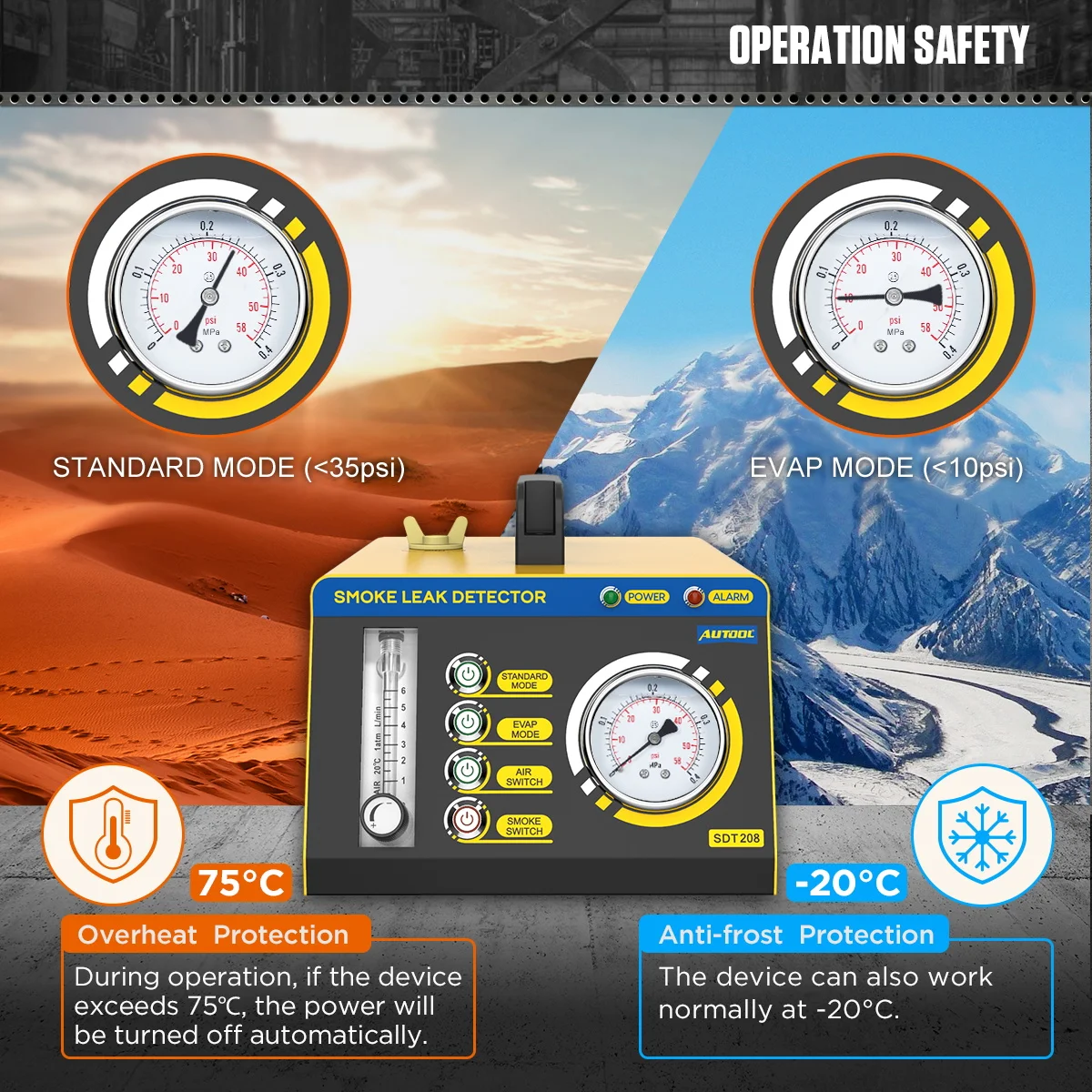 Детектор Утечки дыма AUTOOL SDT208, тестер Системы EVAP, автомобильный детектор утечки, турбокомбинированный вакуумный тестер утечки для трубопроводов