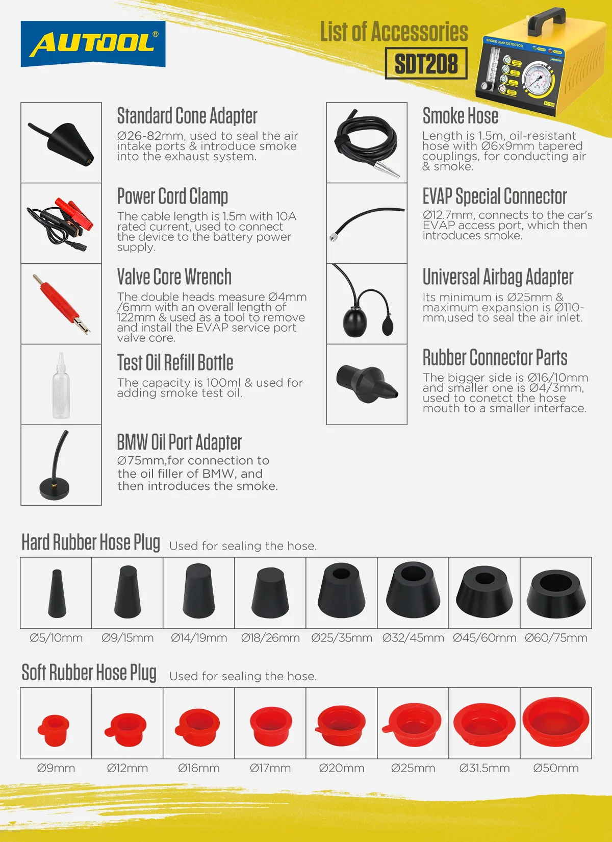 AUTOOL SDT208 smoke leak detectorfor all pipe systems except EVAP