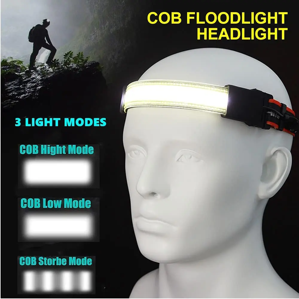 COB налобный фонарь, легкий светодиодный фонарь, 3 режима, рыболовная фара, USB Перезаряжаемый фонарь для кемпинга, мягкое освещение, портативный фонарь