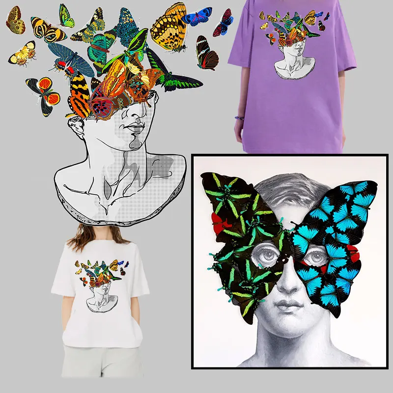 Наклейки-бабочки, футболки, термопечать, Аппликации сделай сам, нашивки для одежды, сделай сам, футболка, стикеры для глажки
