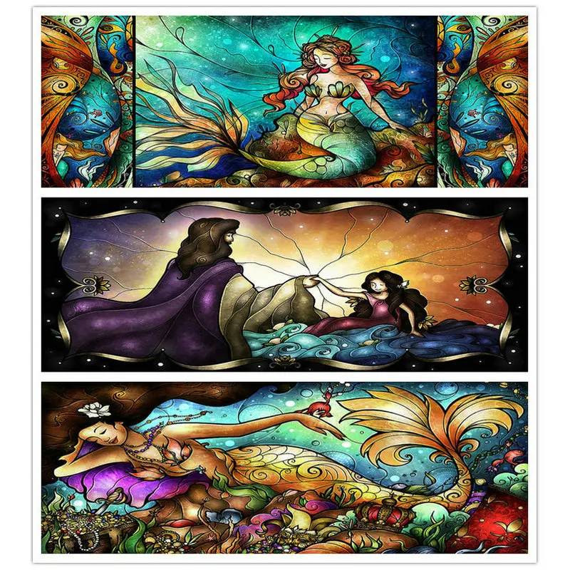 Алмазная живопись сделай сам, рисунок сказочной русалки, квадратные и круглые алмазные украшения из смолы, мультяшный рисунок, ручная работа