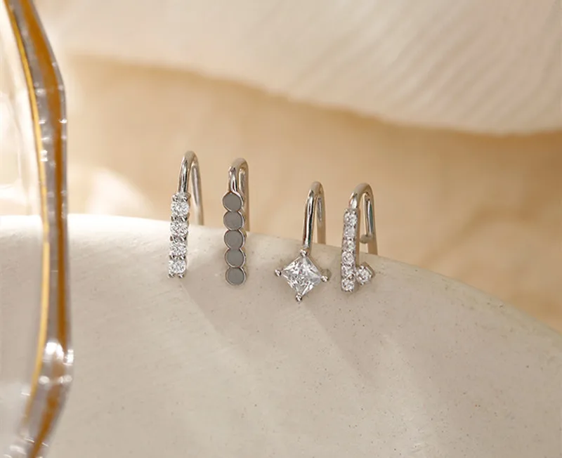 QMCOCO 925 Серебряные Двойные клипсы для ушей с отверстием для ушей в Корейском стиле Instagram простые элегантные дизайнерские U-образные серьги для женщин Подарки на день рождения