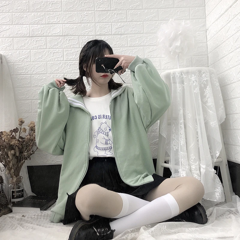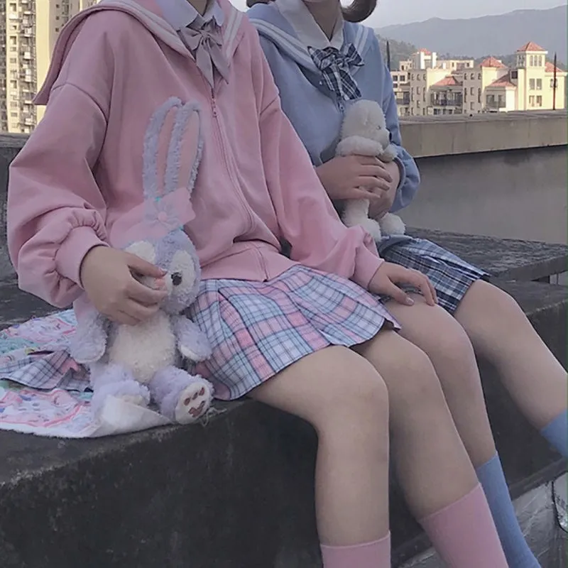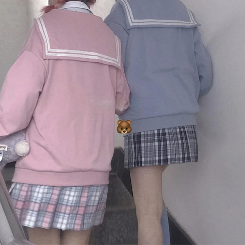 Милый свитшот на молнии с длинным рукавом и воротником-лодочкой в японском стиле, 2021, мягкие розовые и темно-синие Топы JK для девочек в стиле Kpop для подростков