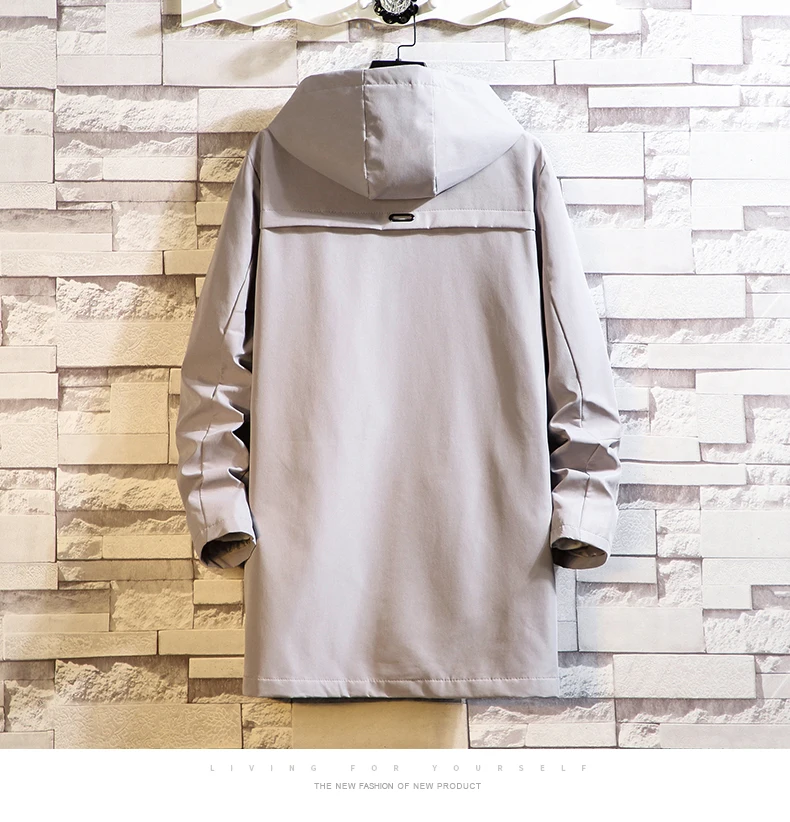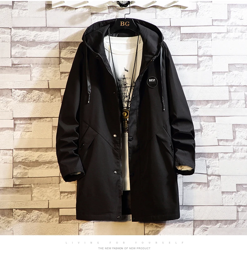 Ветровка мужская длинная, повседневное пальто с капюшоном, Уличная Повседневная Верхняя одежда, черная, весна-осень