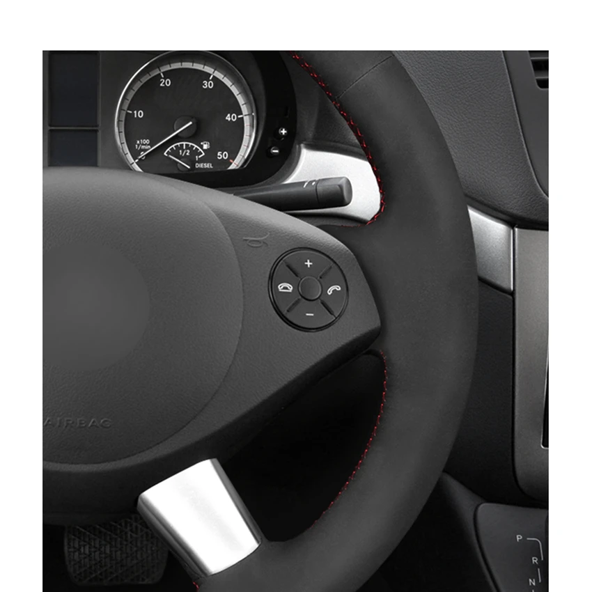 Сшитый вручную черный замшевый чехол на руль для Mercedes Benz C-Cl...