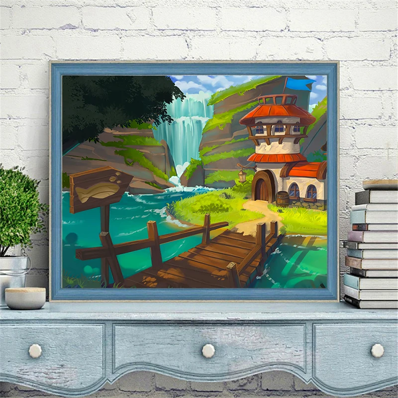 Картина по номерам пейзаж брильянтовая картина горным водопадом и д...