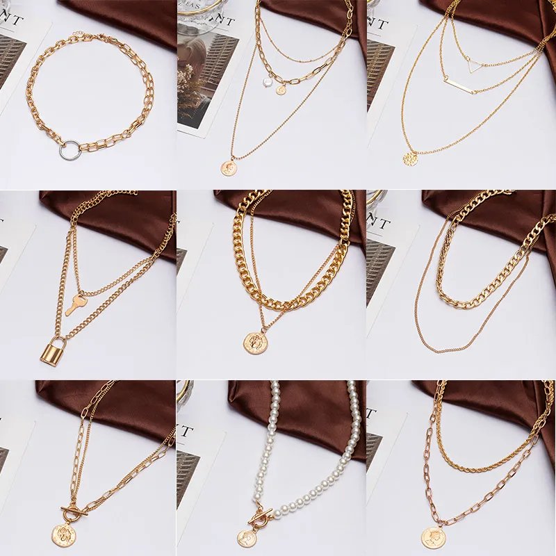 Женская цепочка на шею в стиле панк, многослойное ожерелье с подвеской-крестом и замком для женщин, ожерелье с подвеской в виде портрета, трендовая бижутерия 2021
