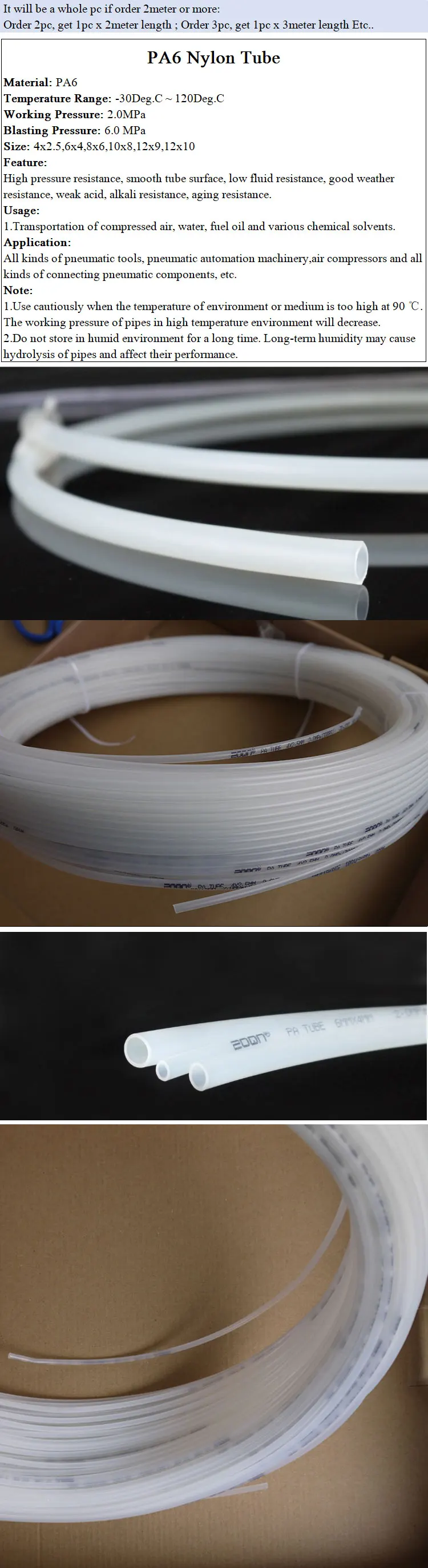 Нейлоновая трубка высокого давления PA6, диаметр 2, 5, 4, 6, 8, 10,...