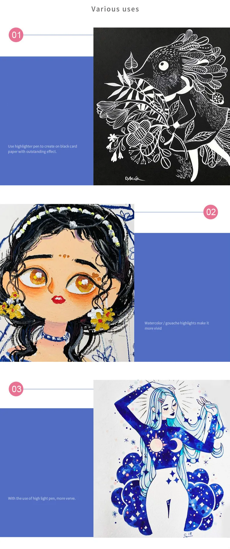 Белый художественный маркер, гелевый рулон, белый карандаш, базовый...