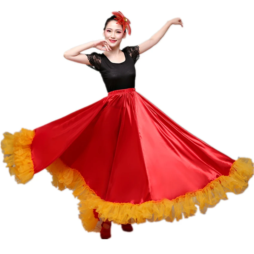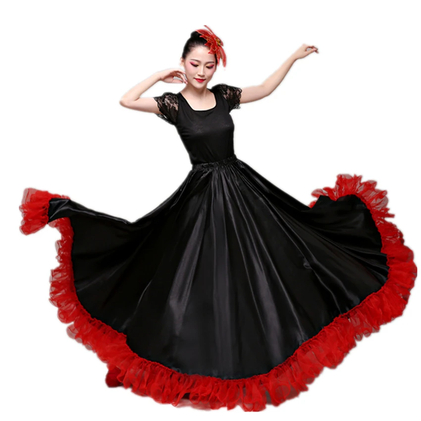 Юбки для фламенко, испанское платье для женщин, танцевальные костюмы, цыганская распашная юбка, хор, сценическое выступление, испанский коррида, большие танцы