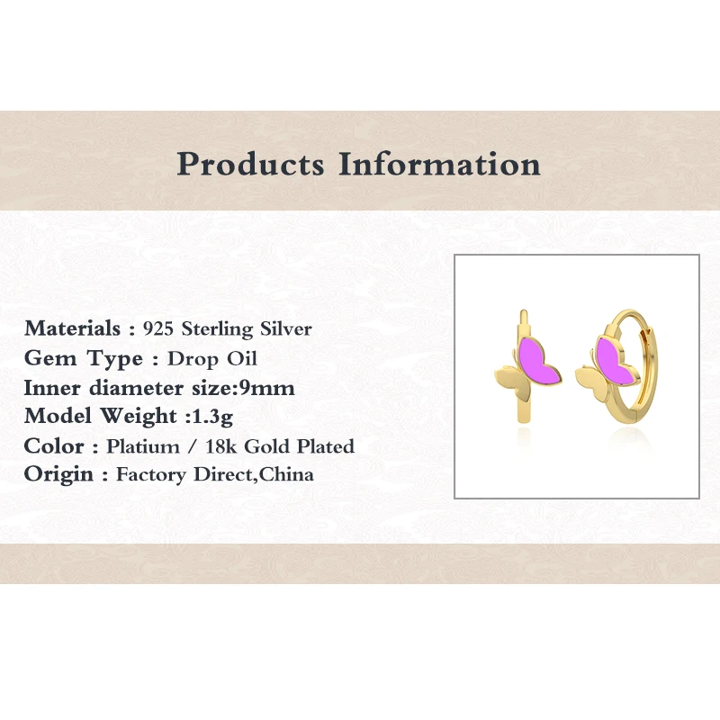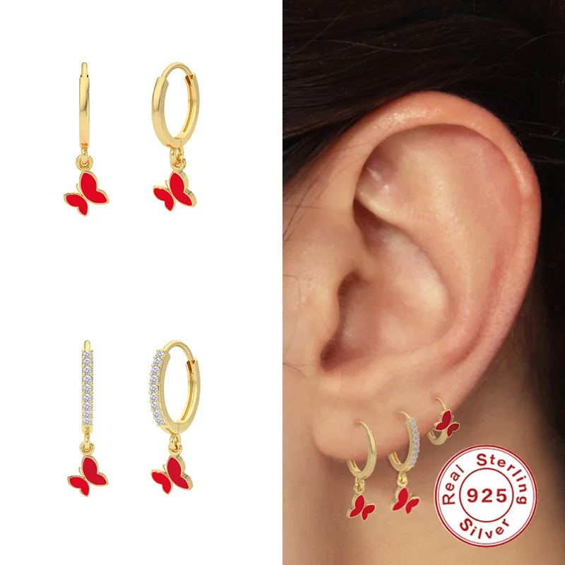 Серьги-кольца CANNER с эмалью из стерлингового серебра 925 пробы, цветные серьги-кольца с бабочками для женщин и девушек, пирсинг, ювелирные украшения Oorbellen