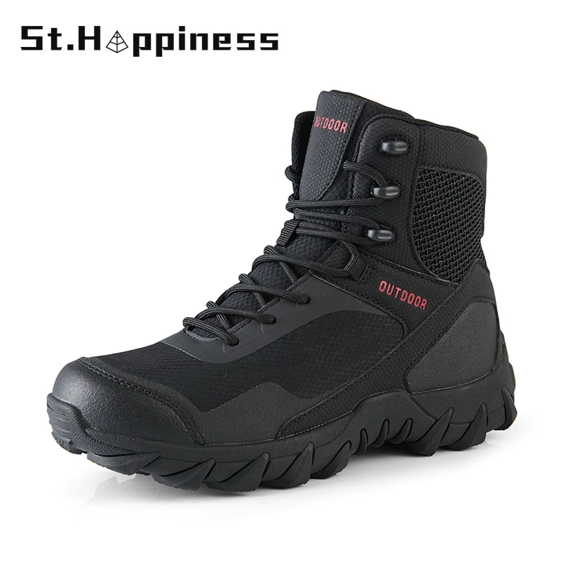 Мужские ботинки в стиле милитари, черные классические тактические ботильоны для отдыха на природе и походов, большие размеры, 2021