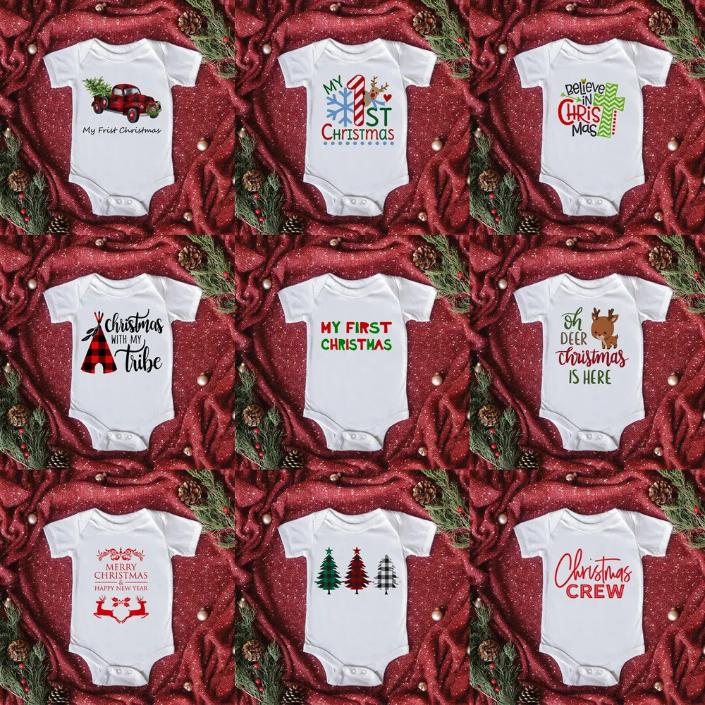 Рождественские комбинезоны с коротким рукавом для новорожденных мальчиков и девочек, праздничный комбинезон для маленьких мальчиков, одежда, рождественское боди