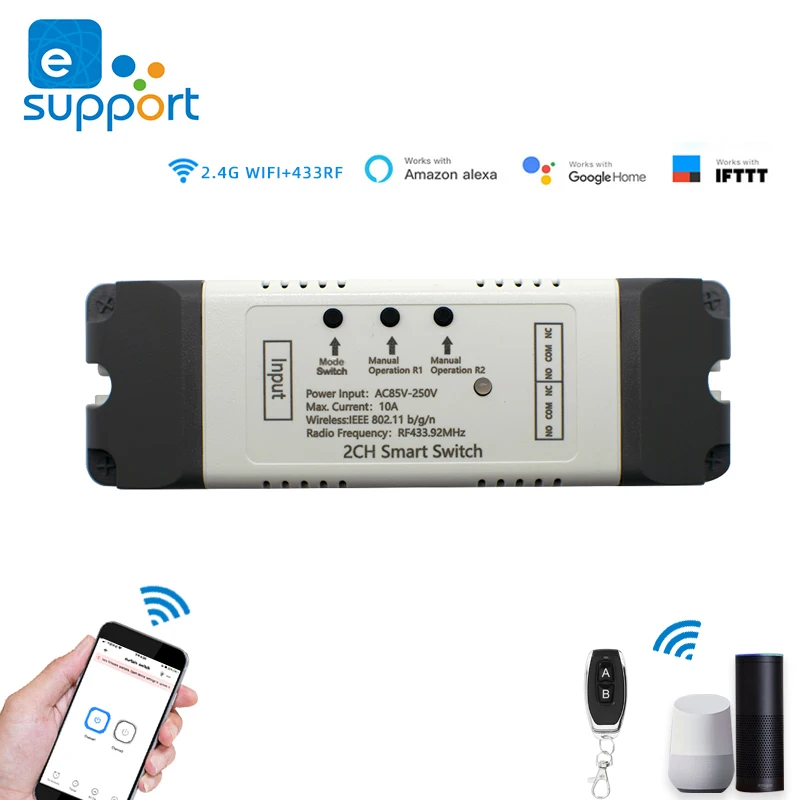 【Контроль приложения 】Вы можете управлять подключенным бытовым прибором в приложении eWeLink в любом месте и в любое время. Например, светильник, электрический чайник, электрическая рисоварка, электрический занавес и т. д.【 RF433 управление】Модуль WIFI поддерживает частоту RF433, и вы можете управлять модулем WIFI с помощью пульта дистанционного управления RF433mhz.【 2,4 ГГц WI-FI управление】В тех случаях, когда вы в домашних условиях, вы можете управлять модуль в ваш смартфон с помощью 2,4 ГГц WI-FI【Управление мобильной сетьюКогда вы выходите на улицу, вы можете управлять устройством в вашем смартфоне с помощью мобильной сети 2G/3G/4G.(Примечание: маршрутизатор должен быть в сети, а модуль WIFI должен поддерживать близкое расстояние с маршрутизатором)【Голосовое управление 】Совместим с Alexa и Google Assistant, вы можете использовать Голосовое управление, чтобы включить/выключить подключенные бытовые приборы.【Share Control】Одно устройство может управлять несколькими телефонами, вы можете поделиться wifi модулем с вашим fam【Групповое управлениеОдин телефон может управлять несколькими смарт-устройствами. Вы можете добавить модуль Wi-Fi и другие смарт-устройства в группу, а затем все смарт-устройства будут автоматически включаться/выключаться в специальное время.