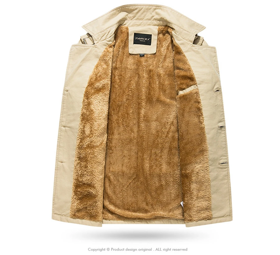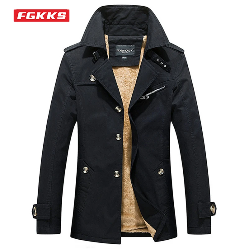 Мужская ветровка с бархатной подкладкой FGKKS, повседневная Толстая куртка-Тренч из хлопка, верхняя одежда для работы и зимы