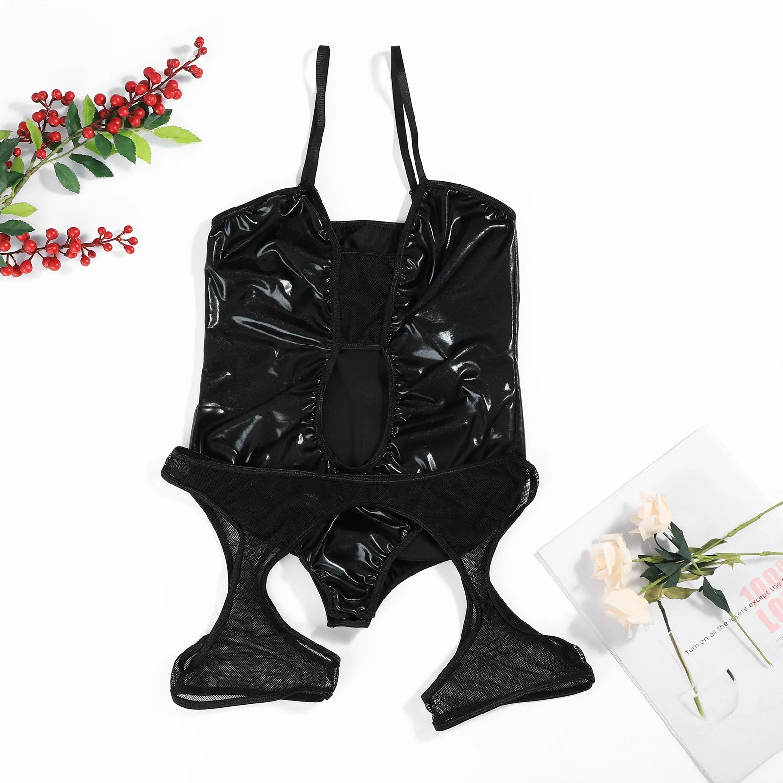 Боди женское из лакированной кожи, соблазнительное нижнее белье из ...
