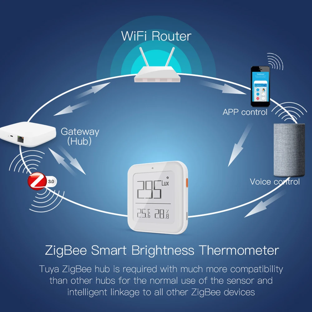 Умный термометр Tuya Zigbee, термометр с датчиком яркости и влажнос...