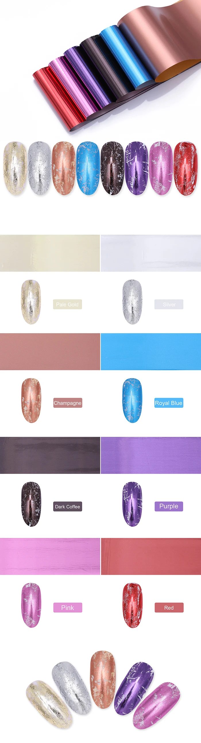 Рулоны для переноса фольги для ногтей, серебристые, золотистые, металлические цветные наклейки для ногтей, бумажные слайдеры, декоративные материалы для маникюра