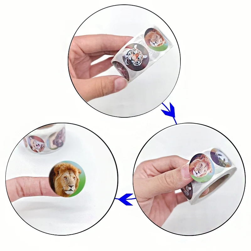 500 шт.рулон, наклейки в виде животных