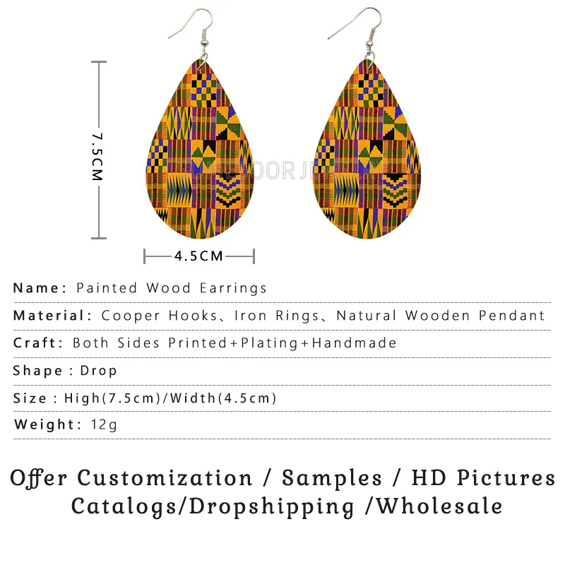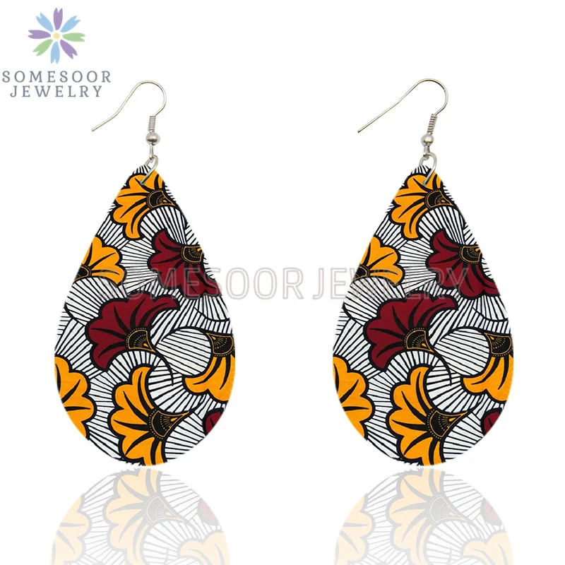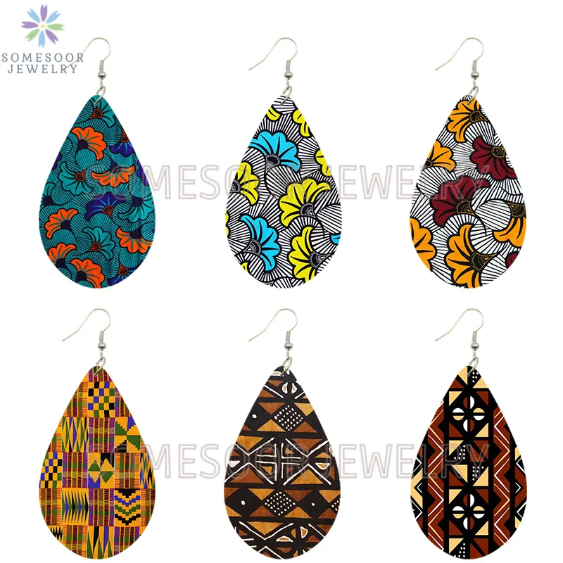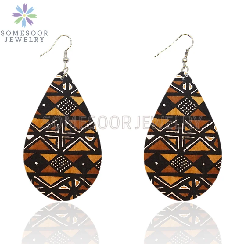Геометрические деревянные серьги SOMESOOR в африканском стиле с принтом в виде слезы, богемные этнические искусства, Висячие ювелирные изделия для женщин в подарок
