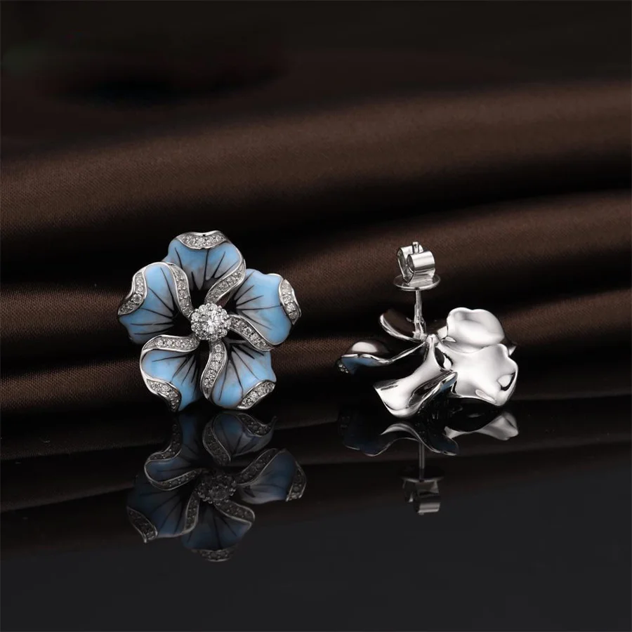 Серьги-гвоздики женские из серебра 925 пробы, с синим эпоксидным цв...