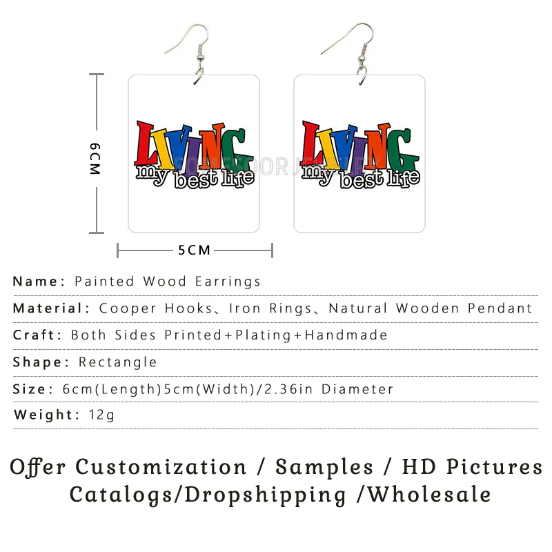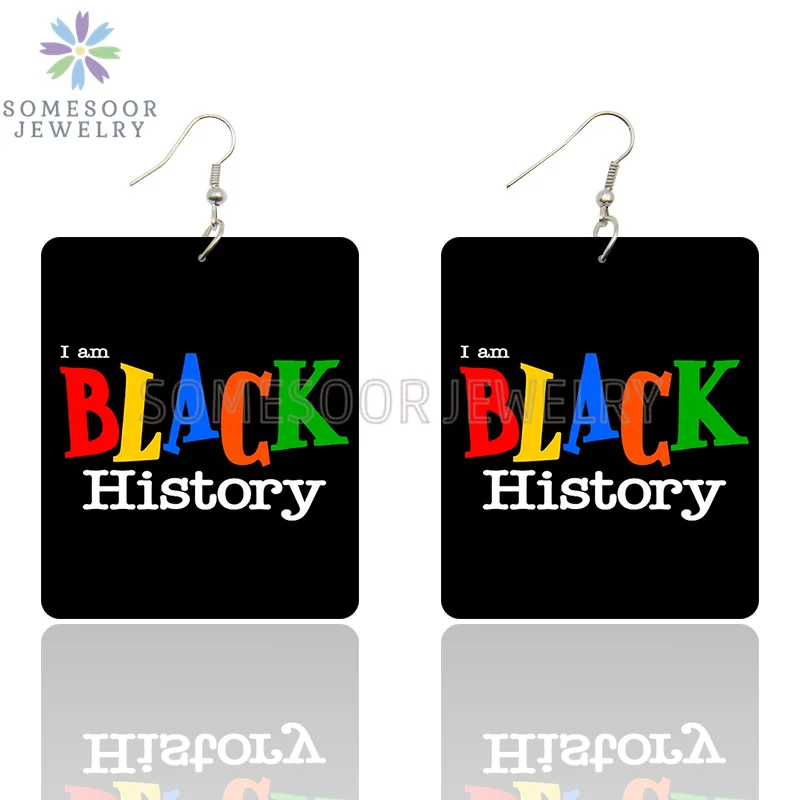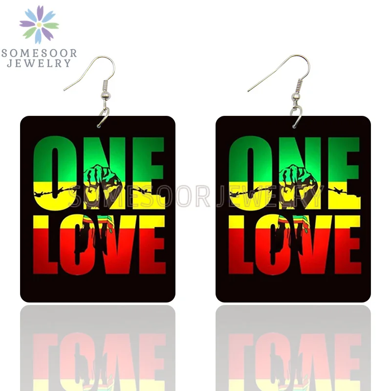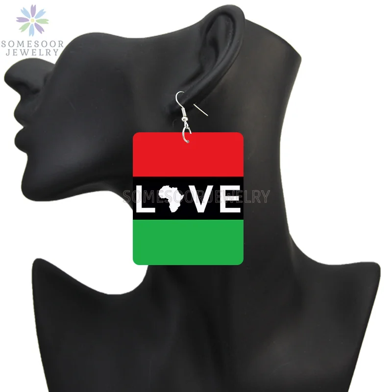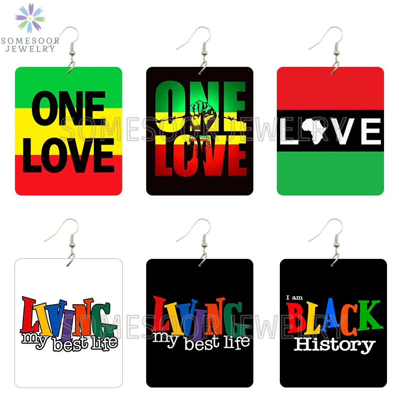 SOMESOOR африканские цвета One Love прямоугольные деревянные висячие серьги черная история жизнь лучшая жизнь высказывания с принтом Висячие Подарки для женщин