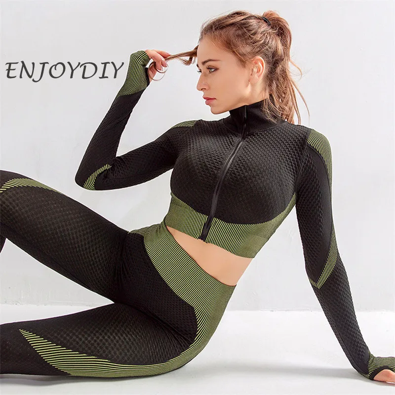 Бесшовные женские комплекты для йоги, женские спортивные костюмы дл...