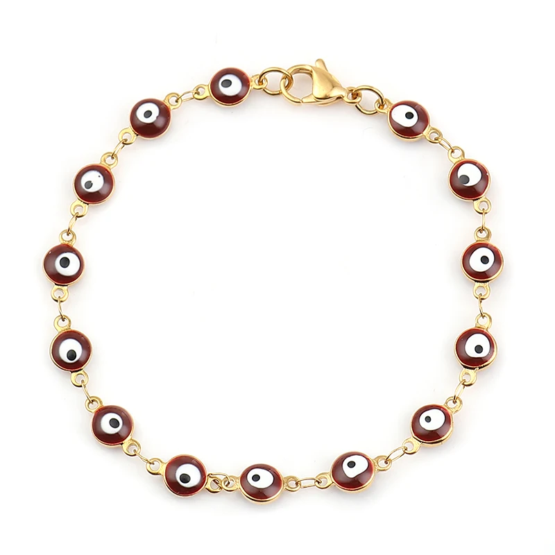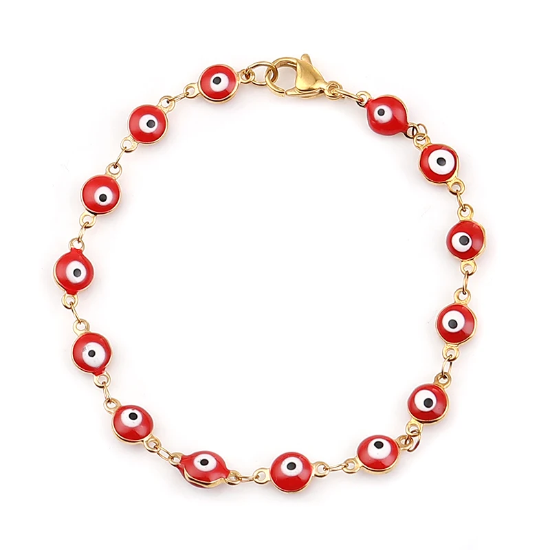 1 шт., модные браслеты из нержавеющей стали, золотой, синий, красный, сглаза, эмаль, браслет из бисера для женщин, турецкие ювелирные изделия для глаз, подарок, длина 19,2 см