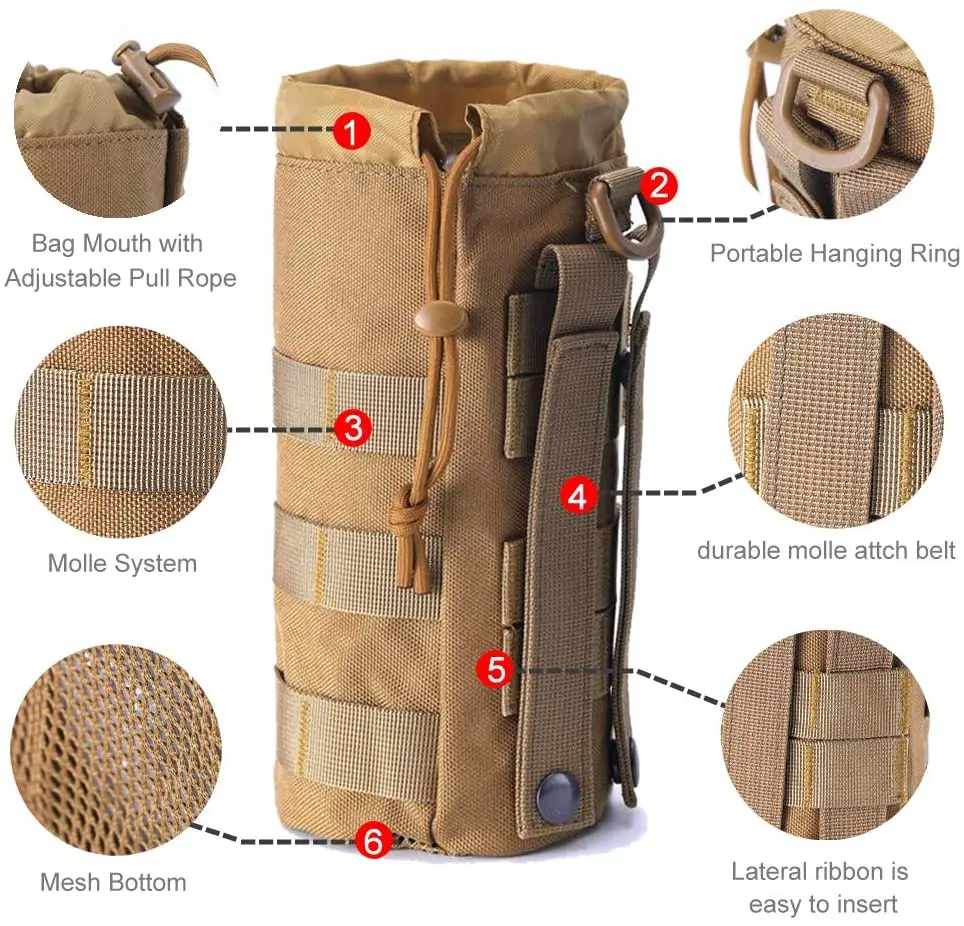 Карман для бутылки с водой на 1,5 л, регулируемый шнурок, Открытый верх, держатель для чайника, сумка, тактический охотничий дорожный гидрататор