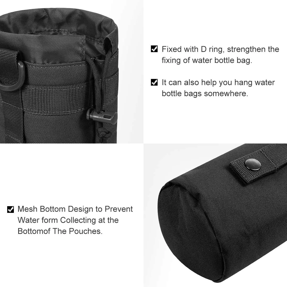 【Система Molle с 2 ремешками на пряжках сбоку, она может быть прикреплена к тактическому рюкзаку, боевому жилету, поясному поясу или другим тактическим шестеренкам в качестве дополнительного внешнего мешка. D-кольца сверху позволяют прикрепить его к карабину или просто повесить на стену самостоятельно【Прочный материал 】изготовлен из нейлона 1000D, в сочетании с прочными аксессуарами, что делает его трудно порвать или разрушать во время активного отдыха.【ADJUSTABLE SIZE】This molle крепления может быть отрегулировано свободно от 7,48*3,54 дюйм (ов) до 8,26x5,9 дюйм (ов) по 3 пряжками сбоку и на завязках сверху, подходит для большинства стандартных размеров 500 мл Бутылки для воды, такие как спортивная бутылка, бутылка для напитков, а также Зонты или инструменты для экстренной помощи.