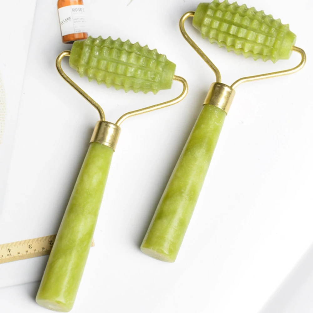 Массажный ролик для лица Guasha доска с двойными головками Нефритовый камень подтяжка лица Расслабление кожи Расслабление похудение красота шеи тонкие Подъемные Инструменты
