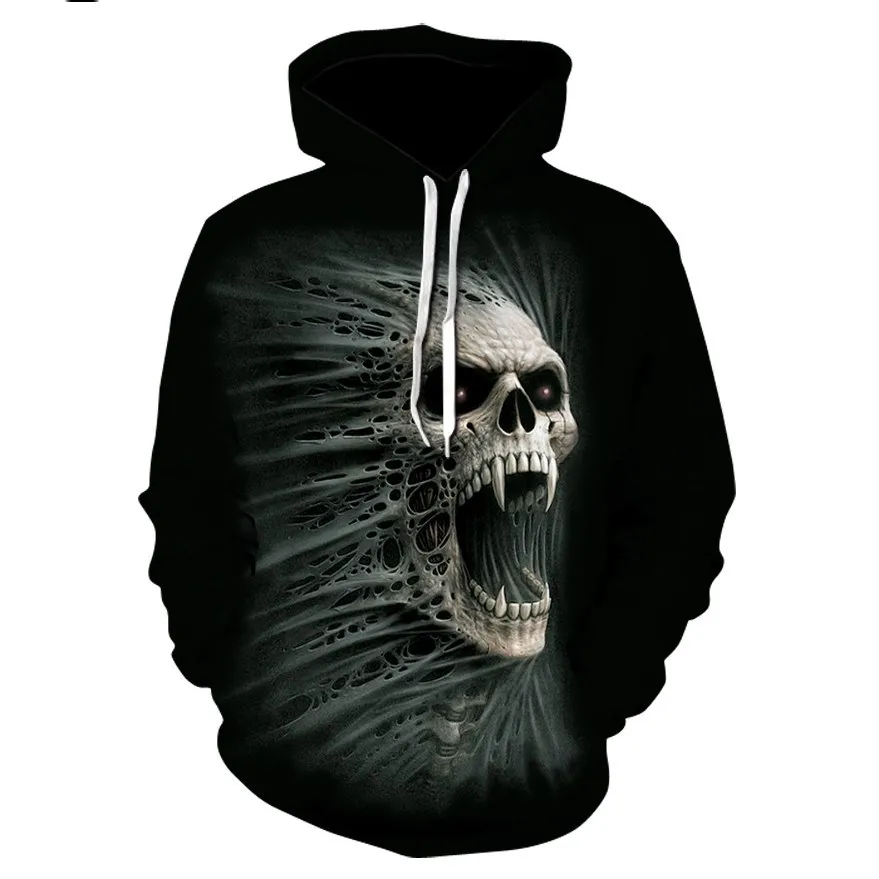 Толстовка мужская с 3D-принтом черепа, хип-хоп худи, новая уличная ...