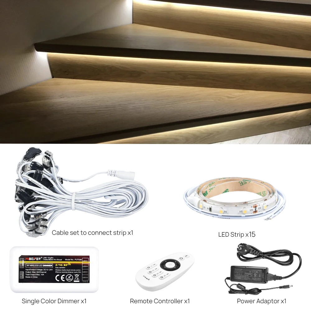 15 шагов, теплый белый свет, 0,5 м, система освещения лестницы со с...